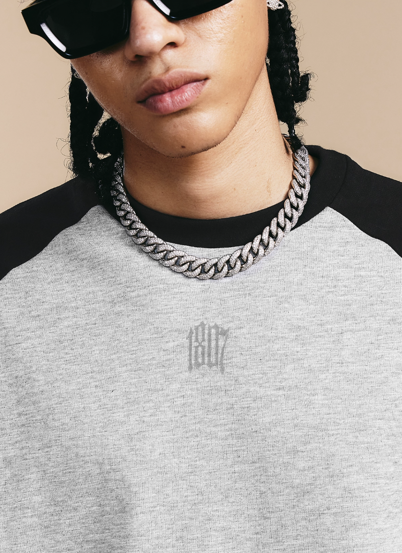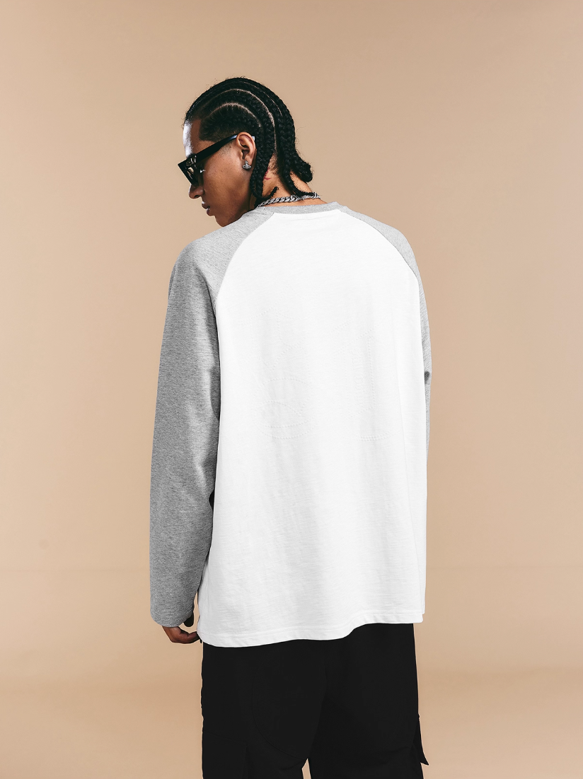 1807 Flocked Print Raglan Long Sleeve Tee | Face 3 Face