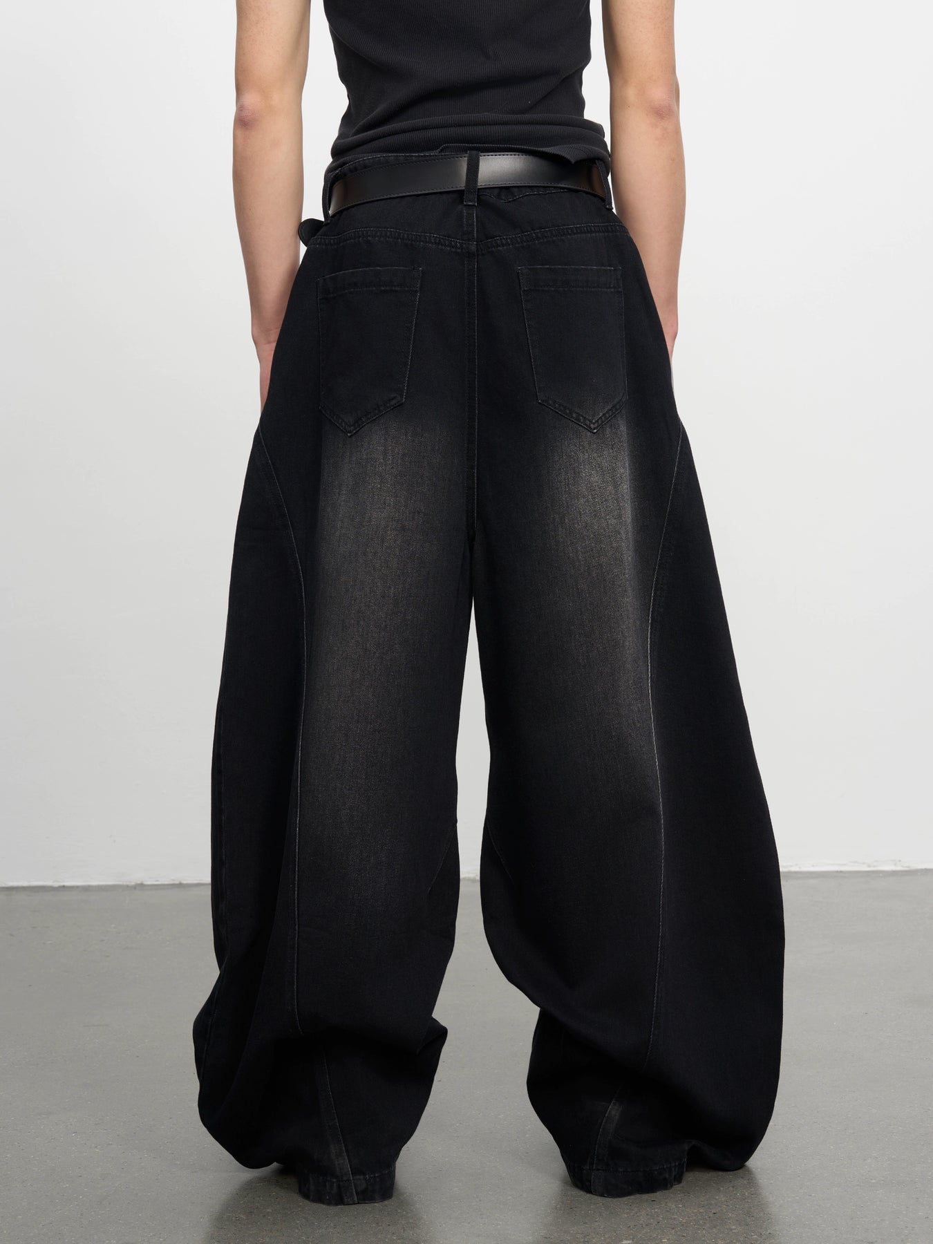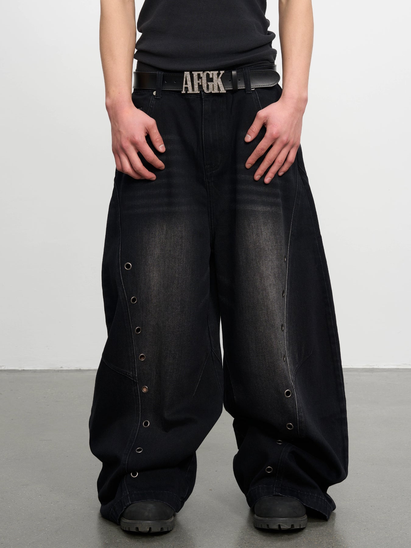 AFGK Metal Grommet Patchwork Washed Baggy Jeans