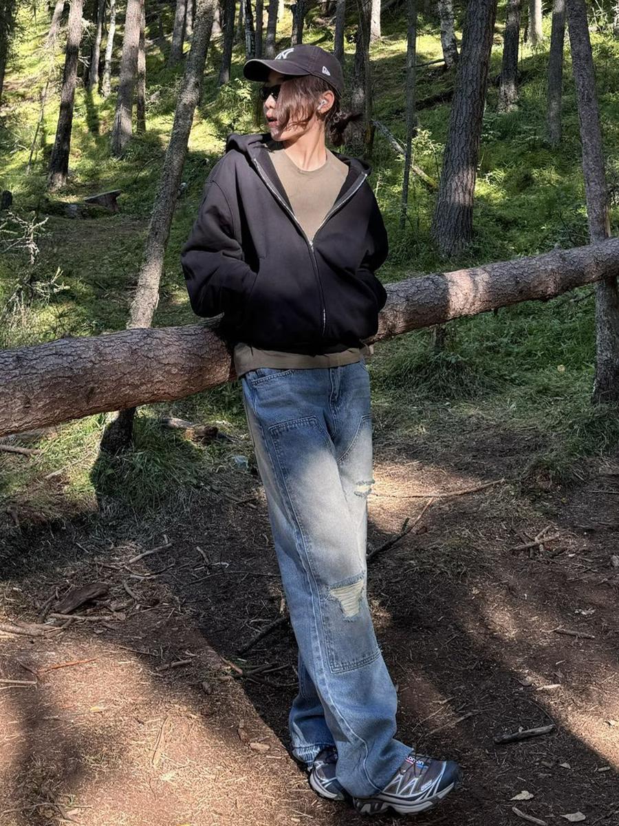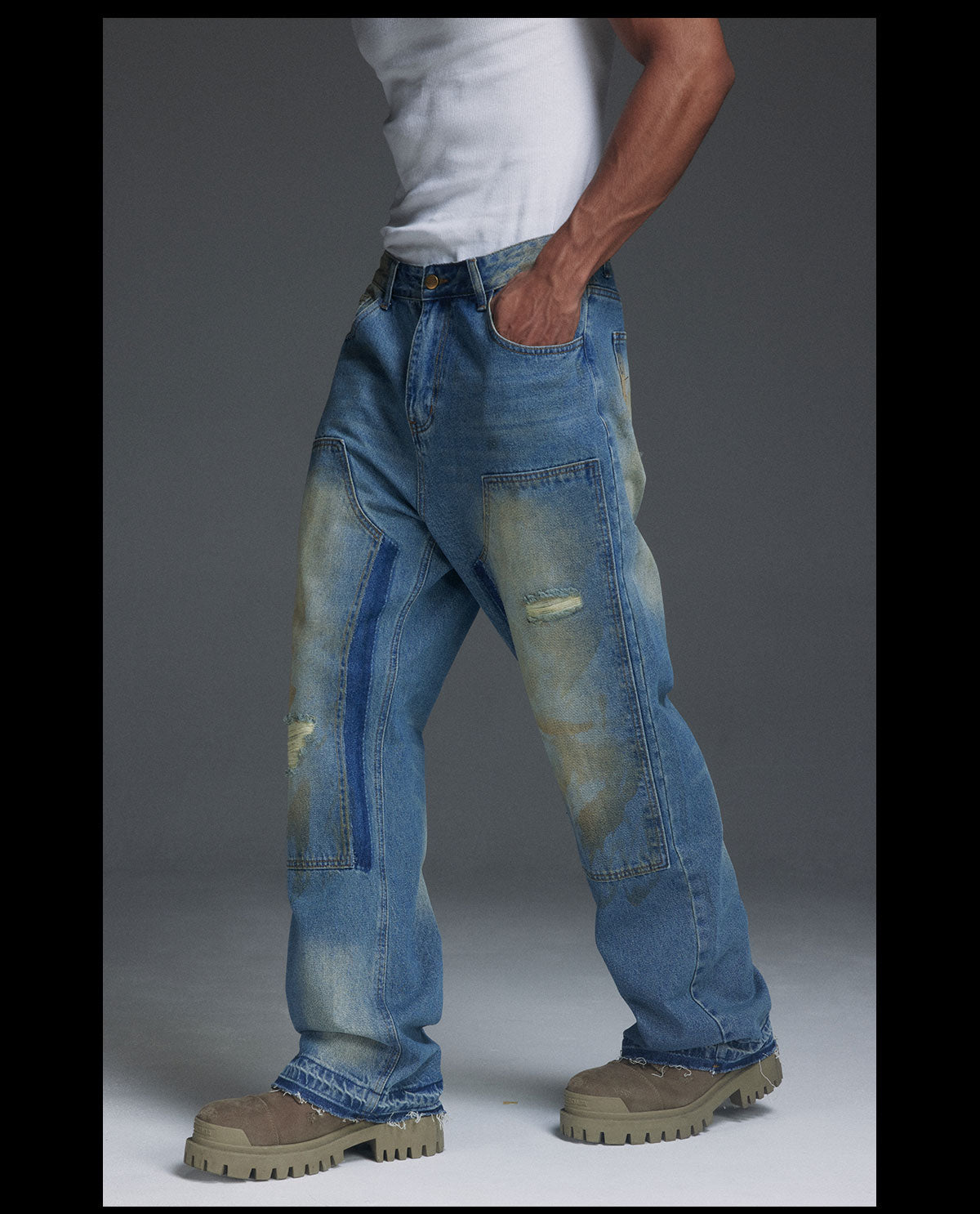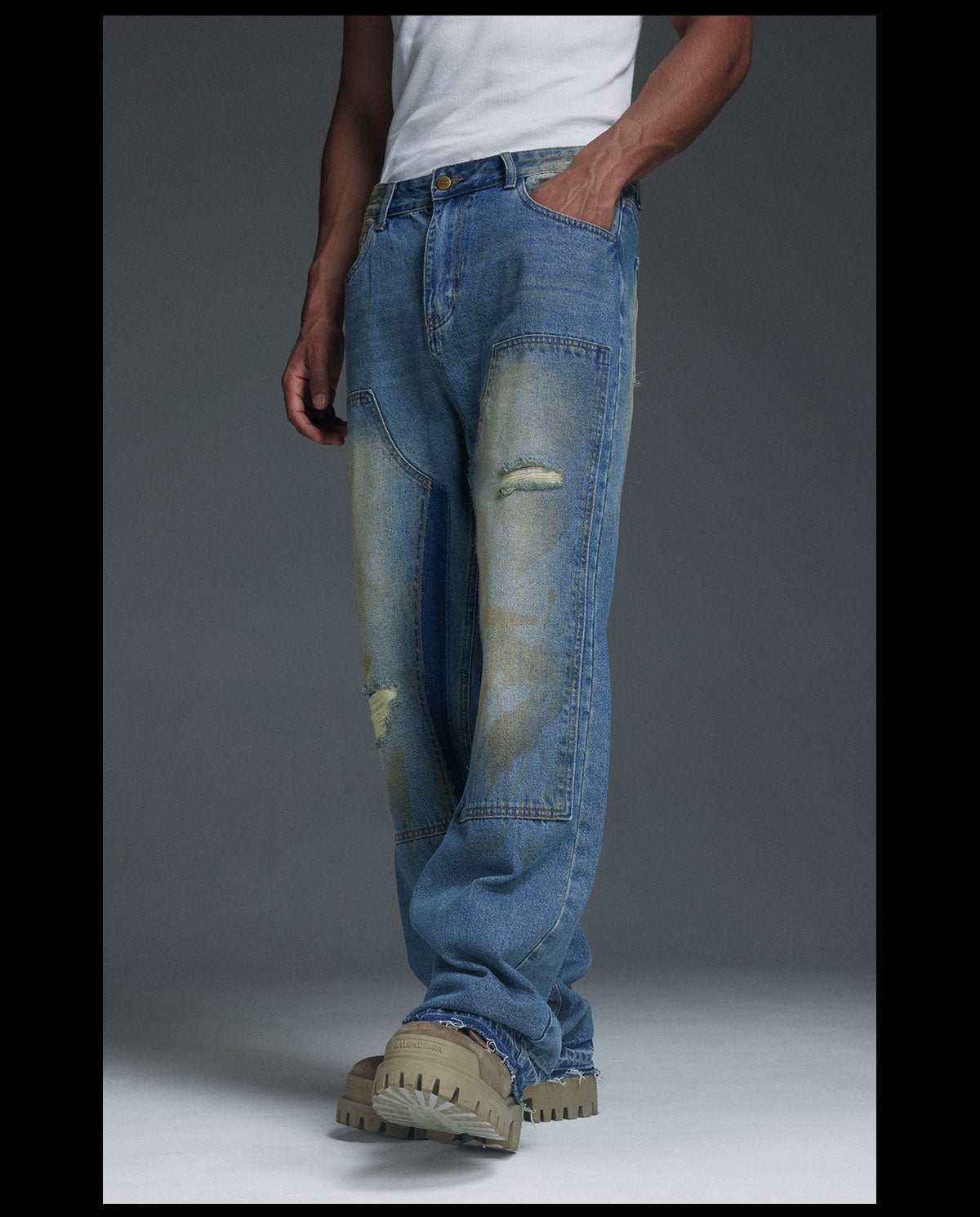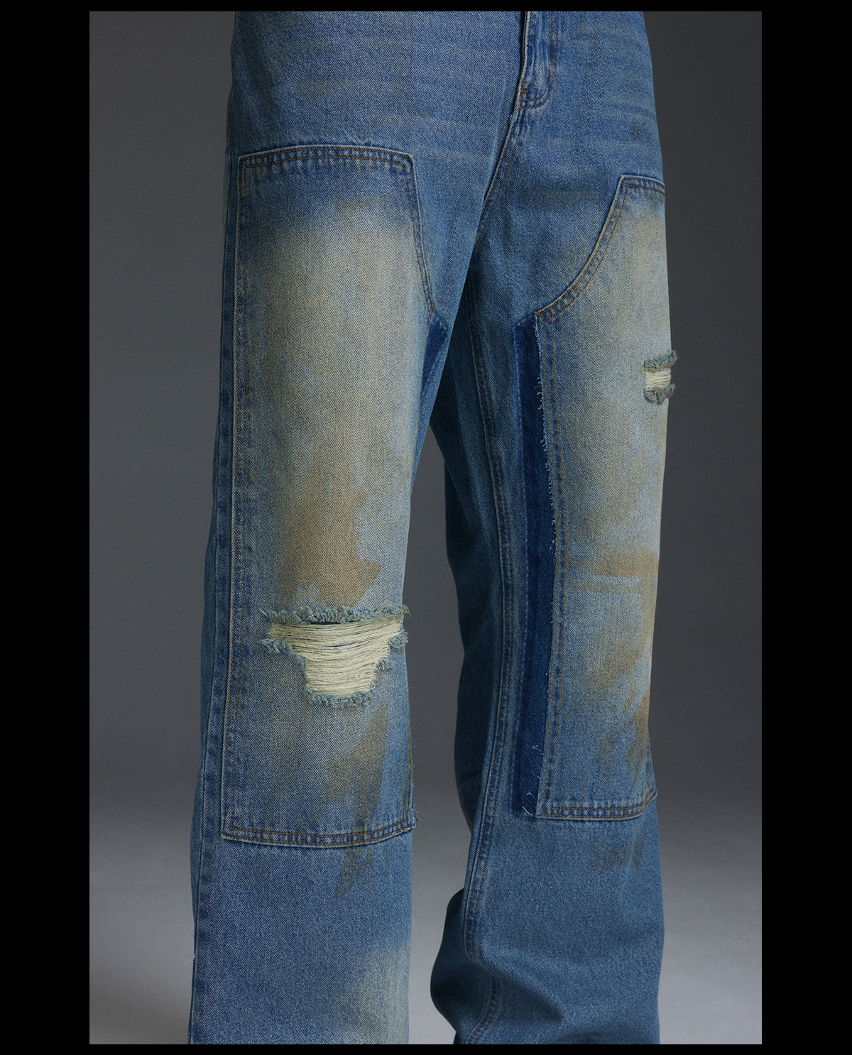 NOVACAM Washed Distressed Double Knee Jeans | Face 3 Face