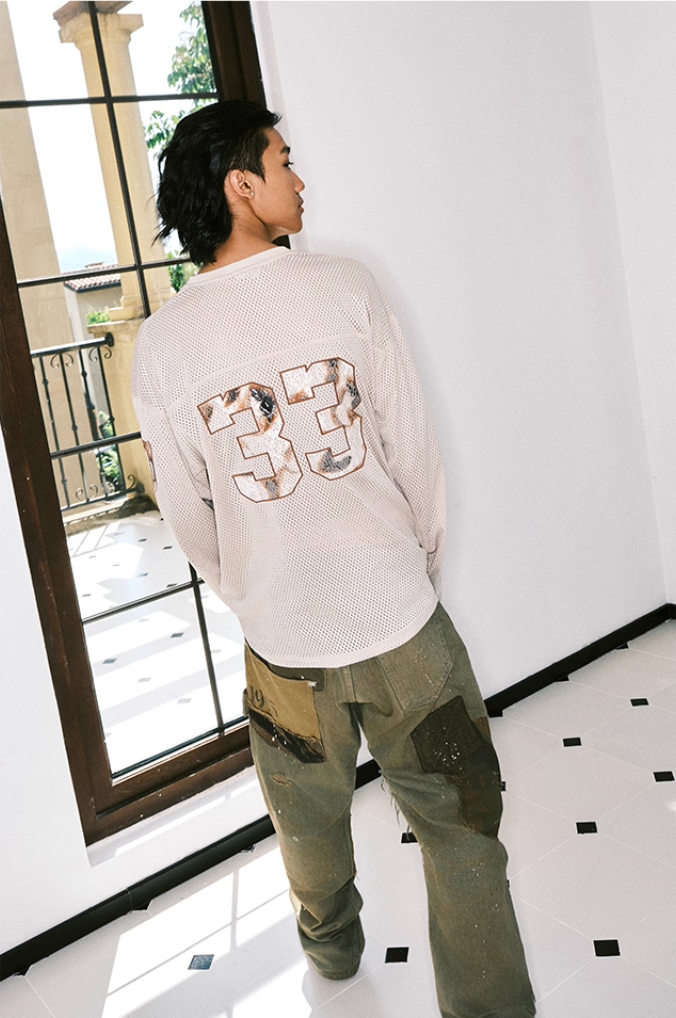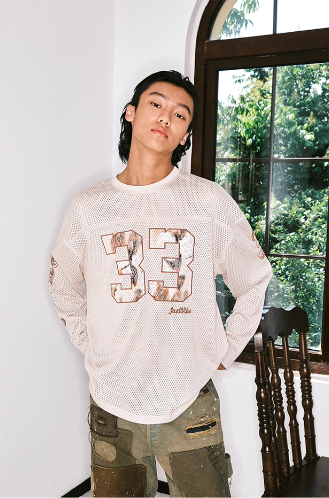 JUST VIBE Lace Patch Embroidered Mesh Hockey Jersey
