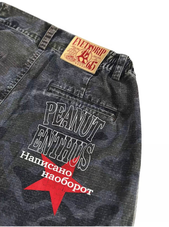 EVETS Washed Faded Camouflage Patchwork Shorts