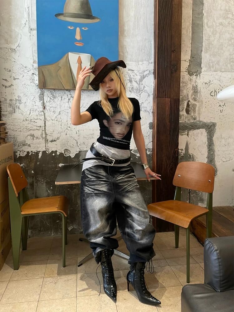 EVETS Whisker Washed Faded Baggy Jeans | Face 3 Face