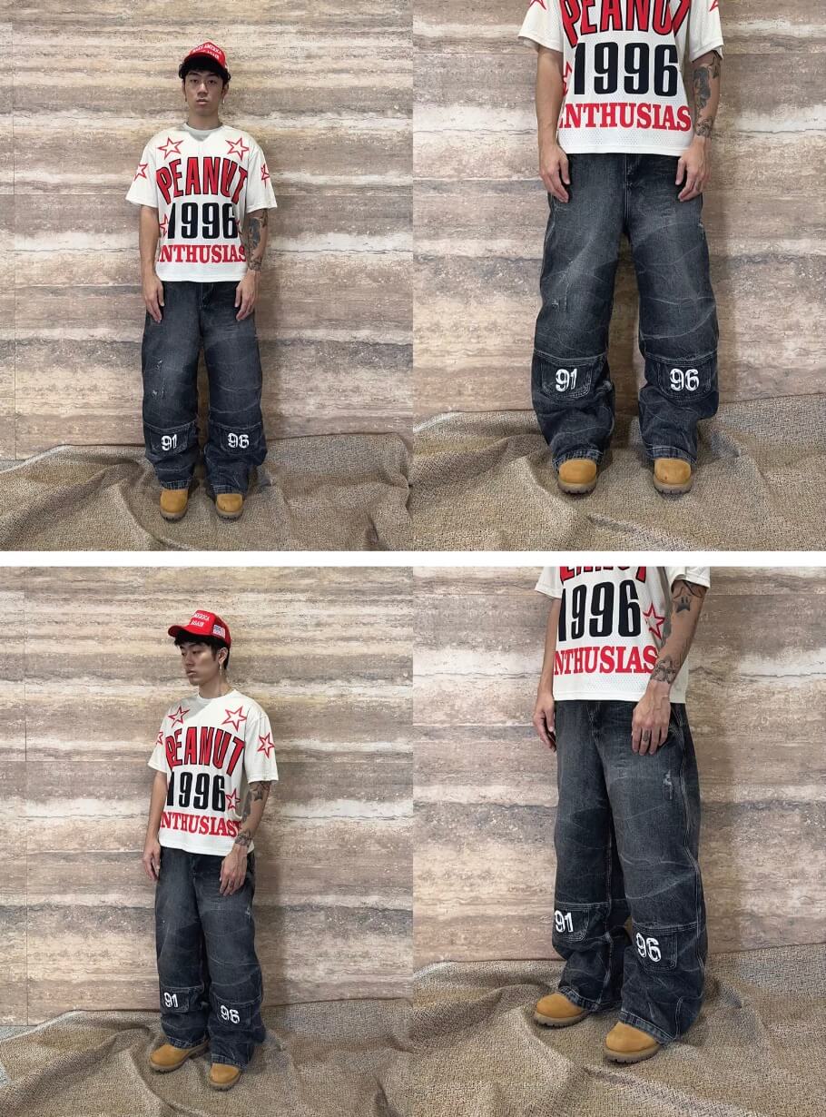 EVETS x LABT Heavy Lightning Whisker Washed Baggy Jeans | Face 3 Face