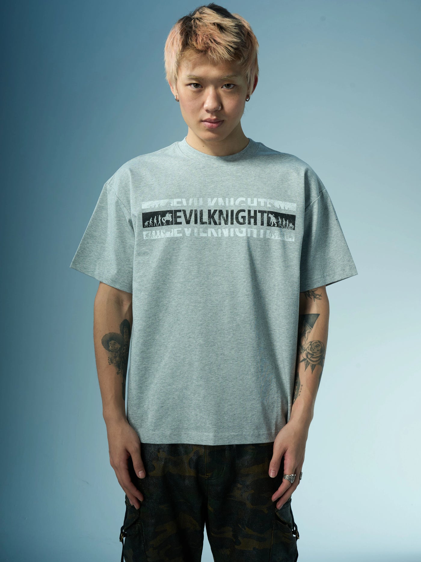 EVILKNIGHT(EK) Devil's Evolution Letter Distressed Print Tee | Face 3 Face