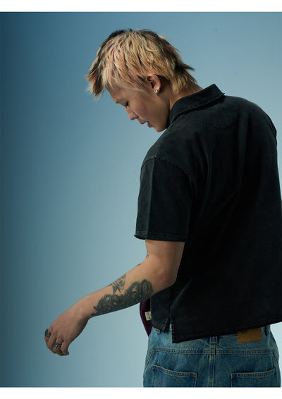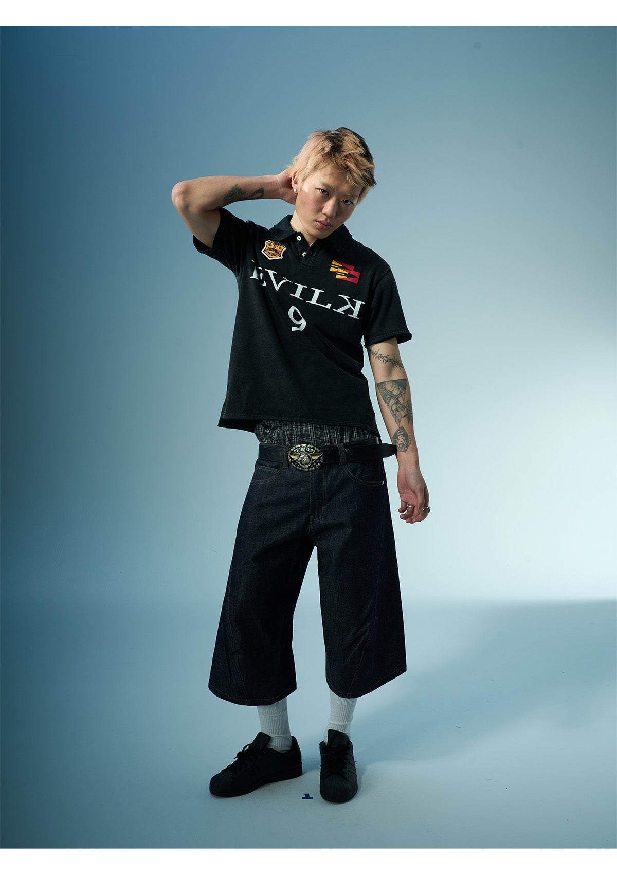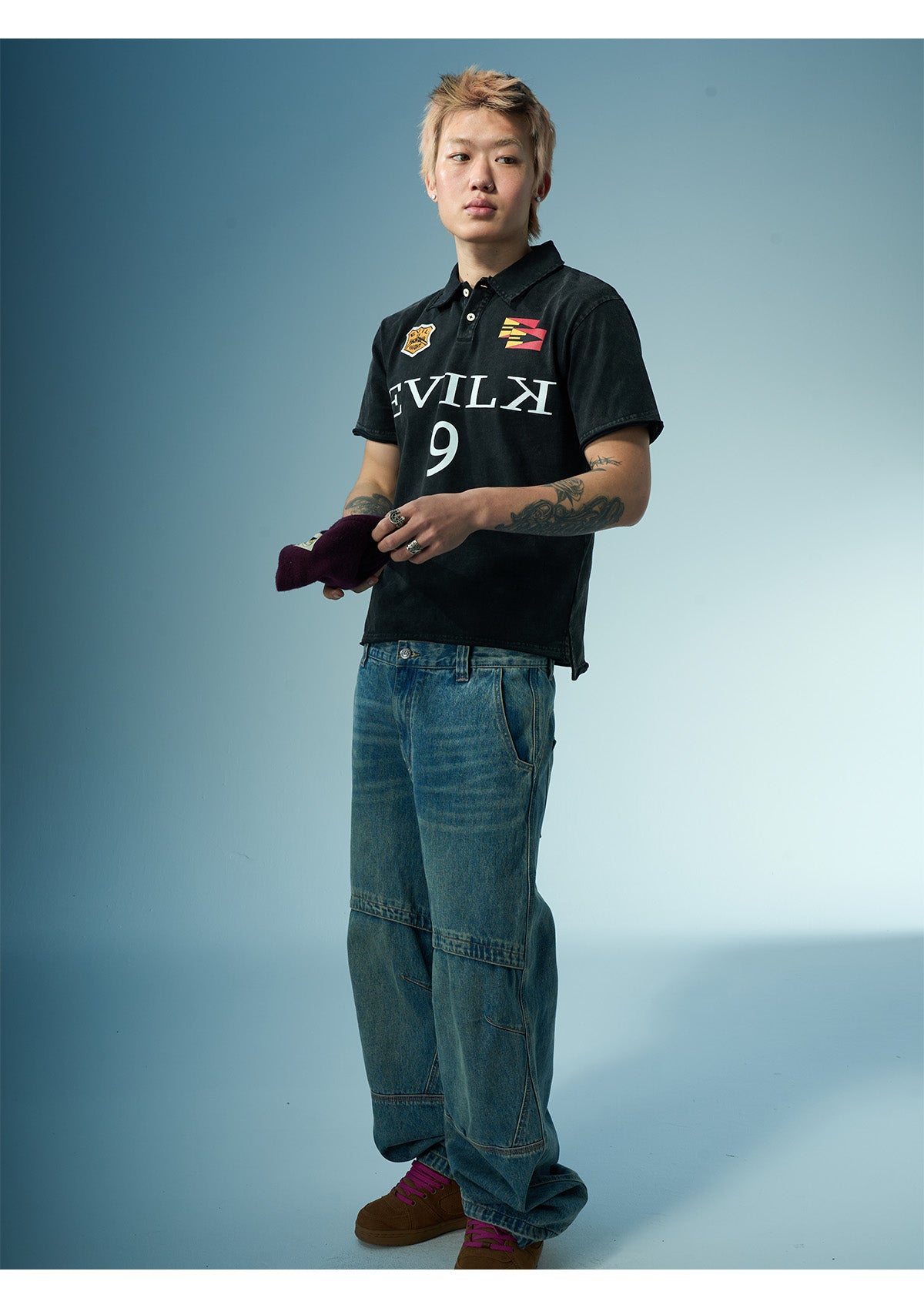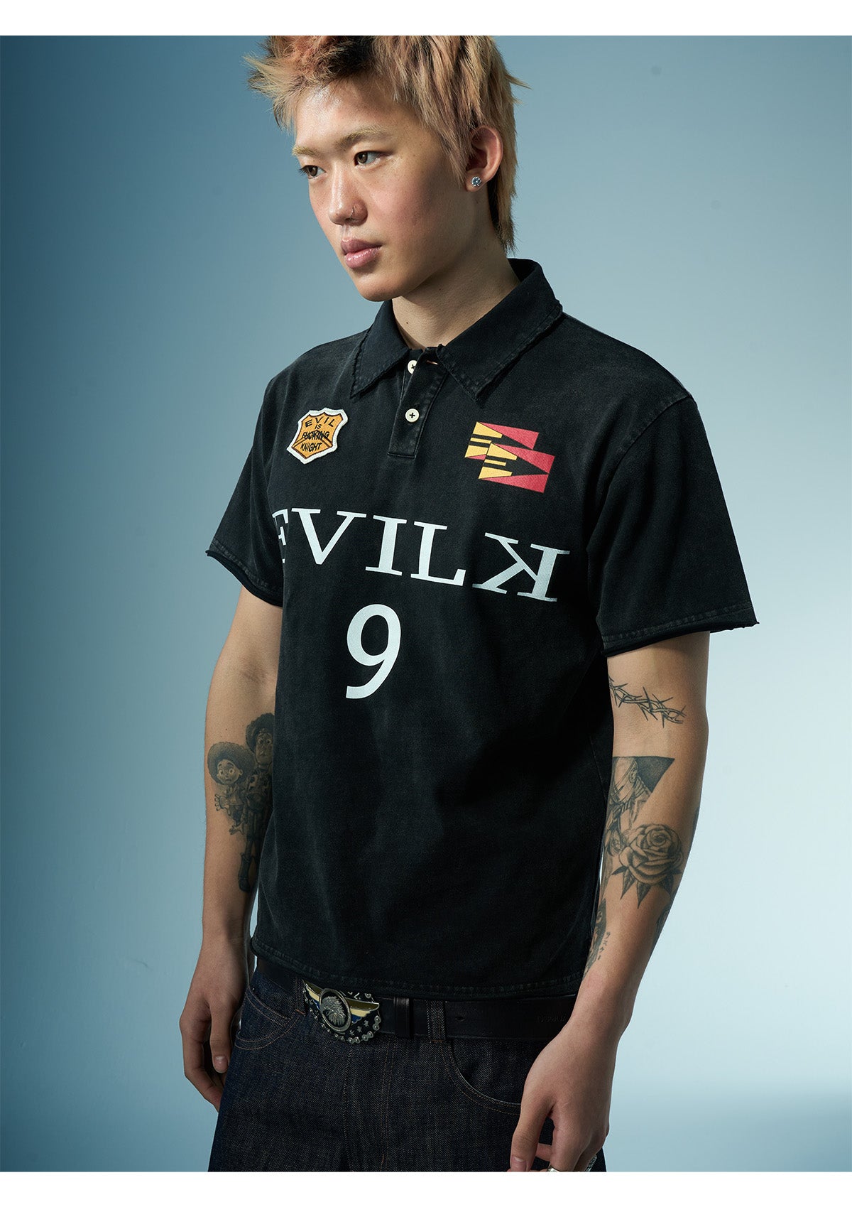 EVILKNIGHT(EK) Embroidered and Logo Printed Washed Polo | Face 3 Face