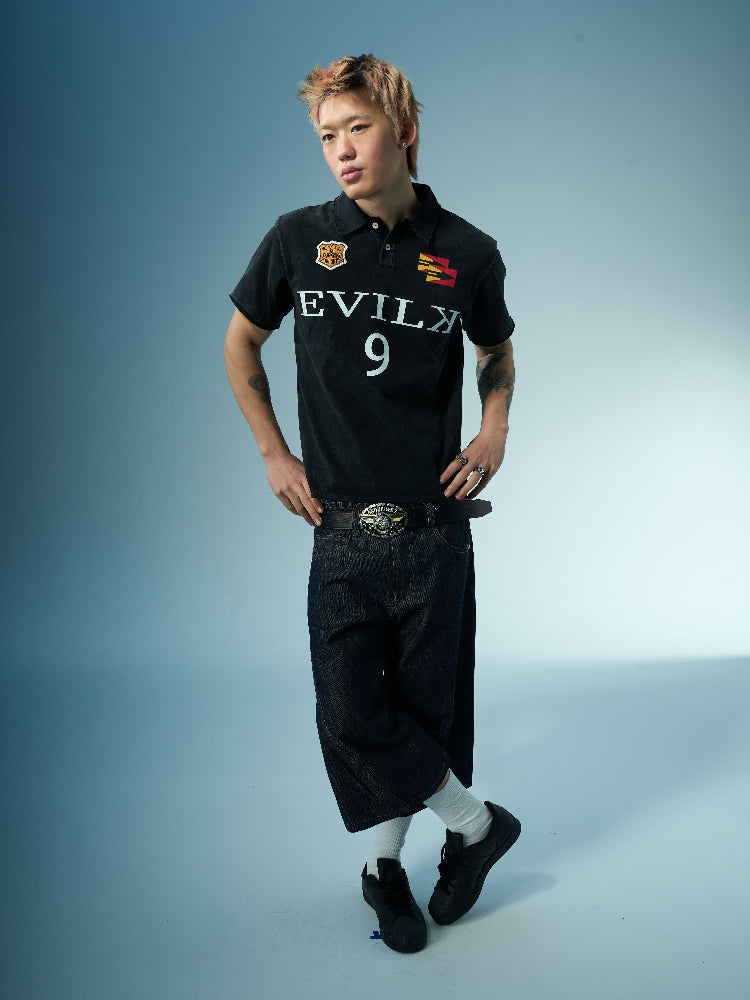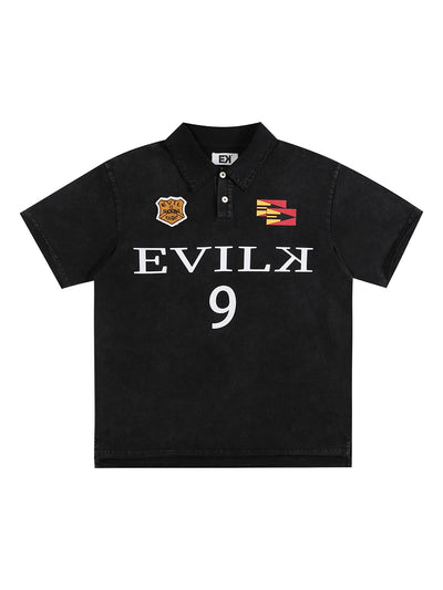 EVILKNIGHT(EK) Embroidered and Logo Printed Washed Polo
