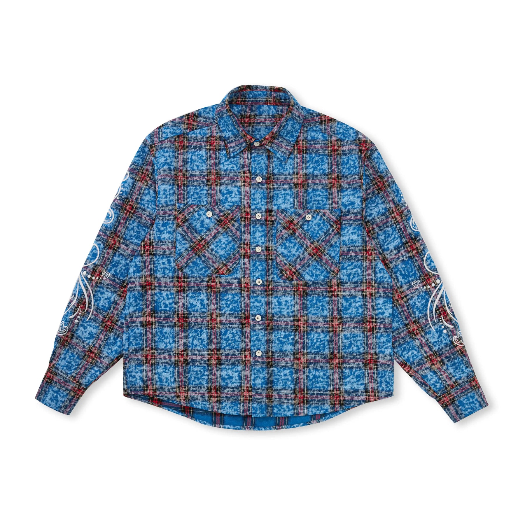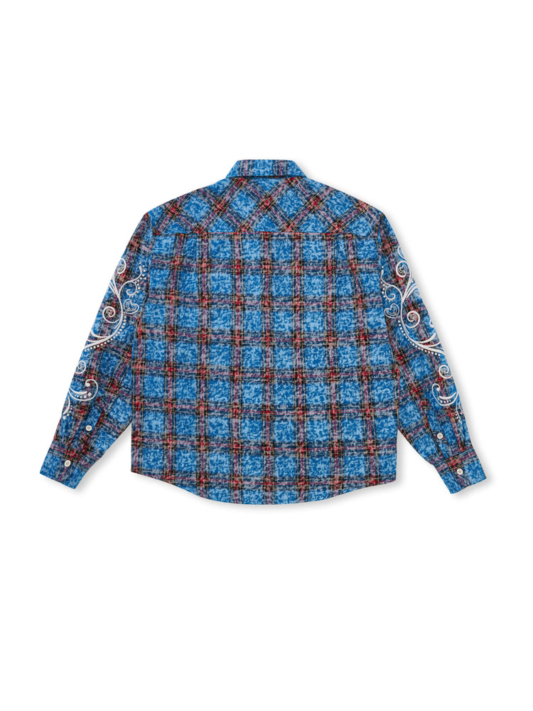 EVILKNIGHT(EK) Floral Embroidered Plaid Long Sleeve Shirt | Face 3 Face