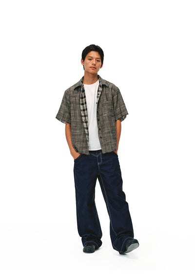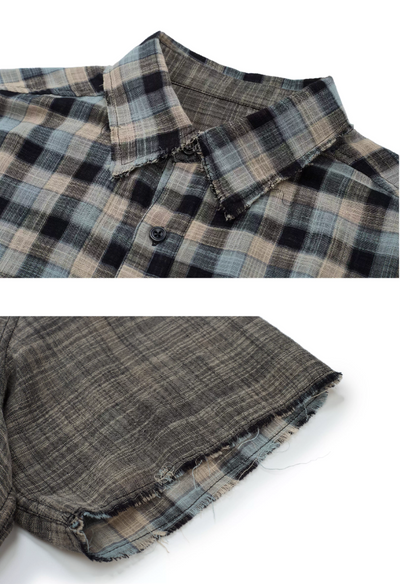 EVILKNIGHT(EK) Striped Plaid Reversible Short Sleeve Shirt