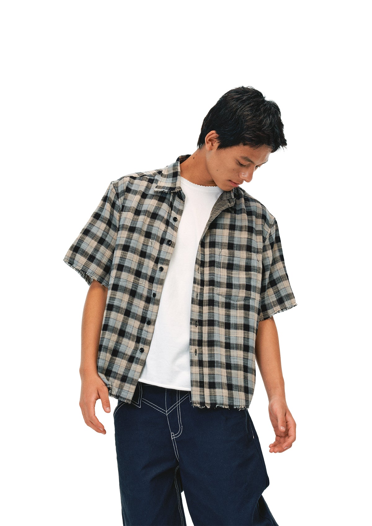 EVILKNIGHT(EK) Striped Plaid Reversible Short Sleeve Shirt | Face 3 Face