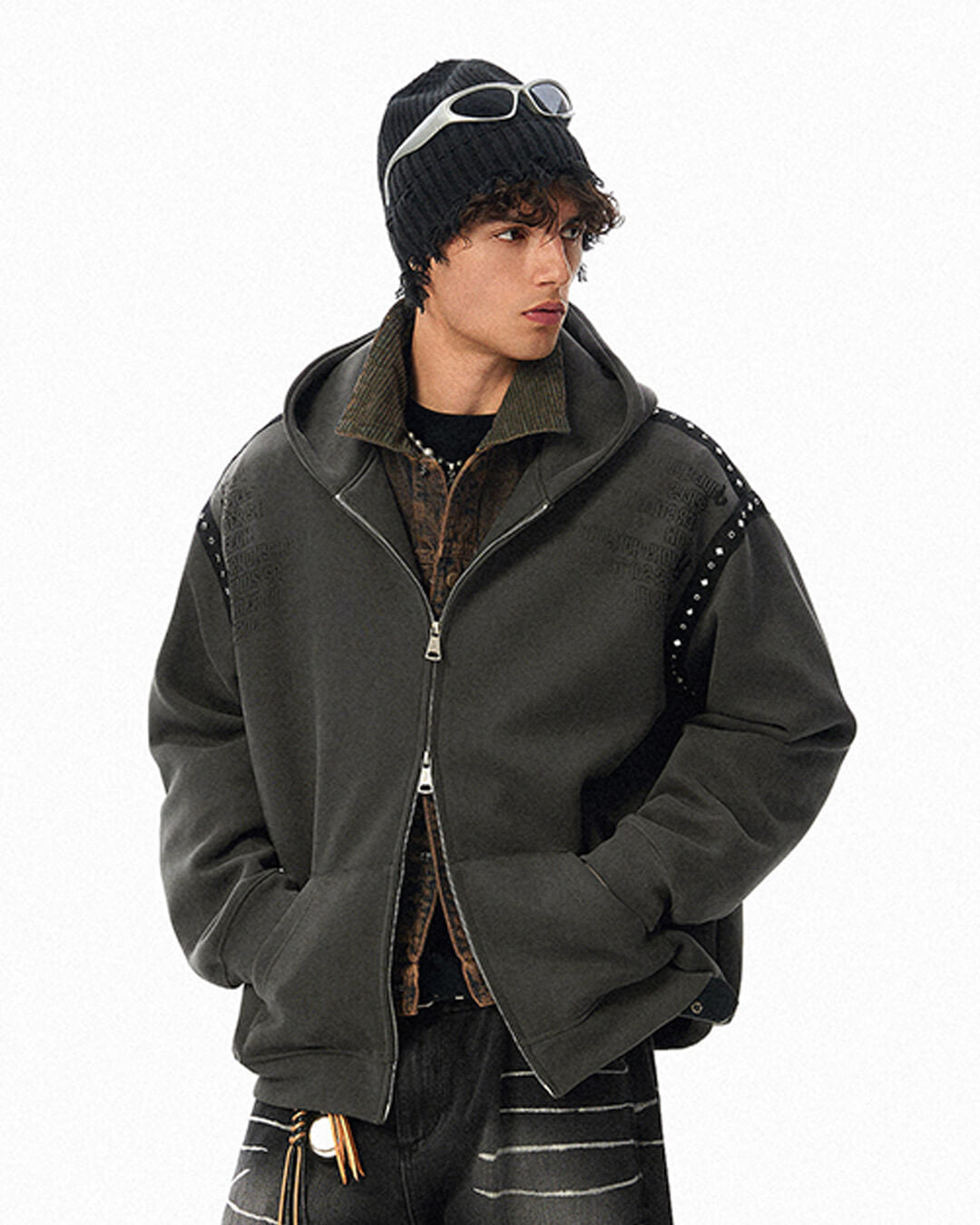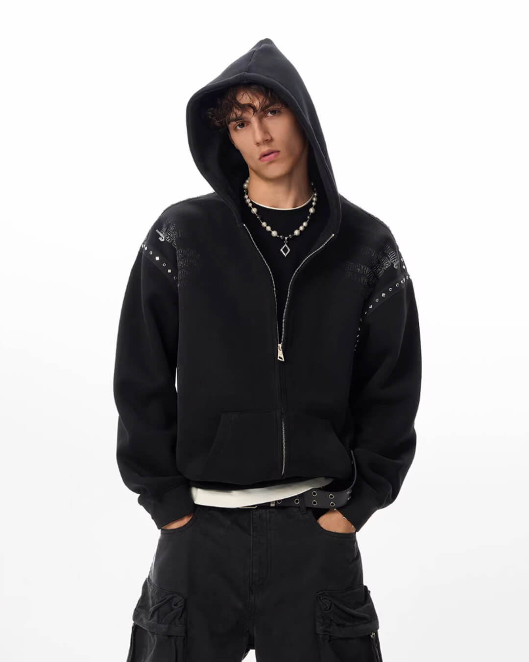 JHYQ Punk Style Studded Double Zipper Hoodie | Face 3 Face
