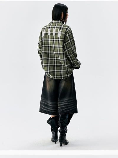 MEDM Green Pearl Embroidery Plaid Long Sleeve Shirt