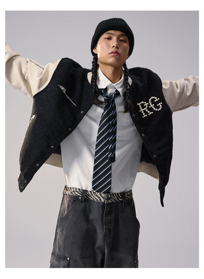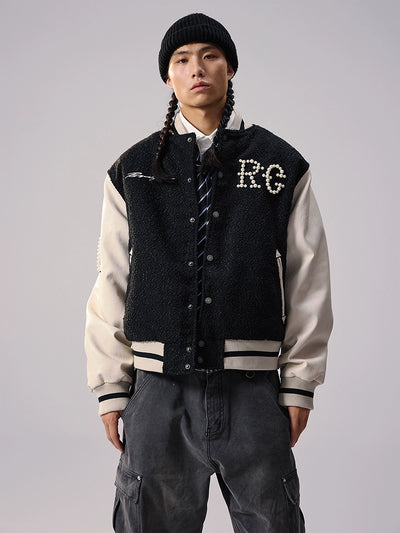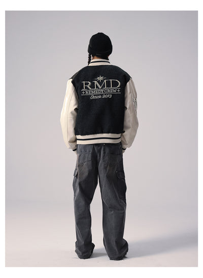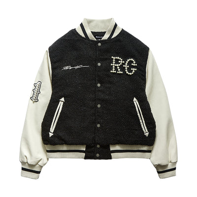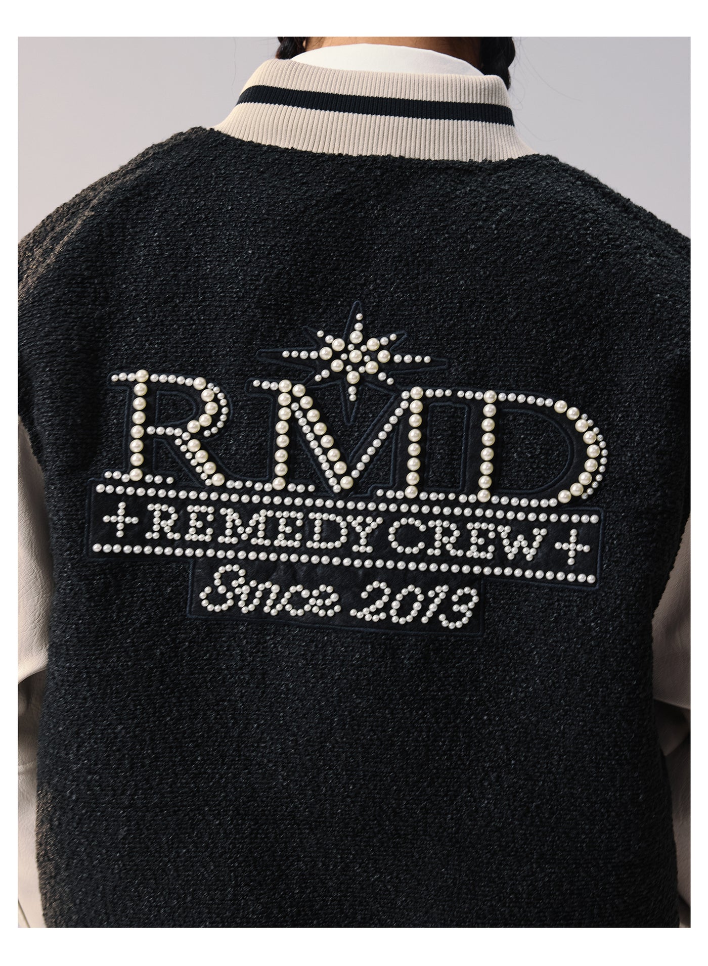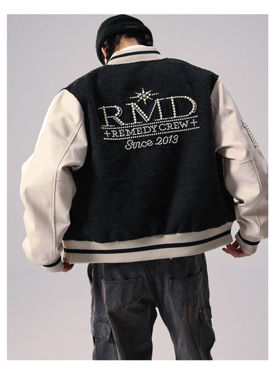 Remedy RMD Pearl Embroidered Leather Varsity Jacket