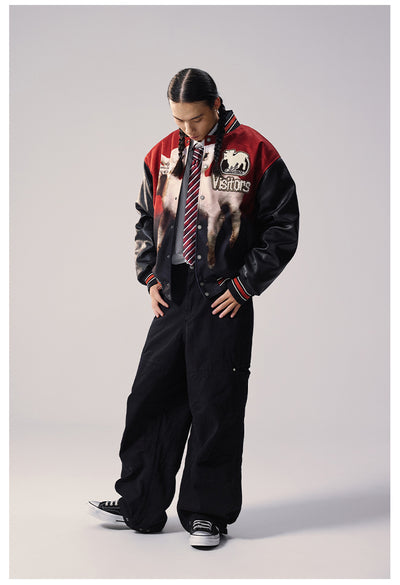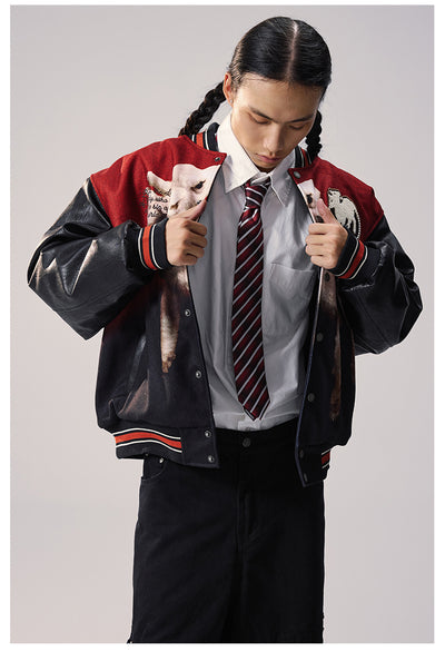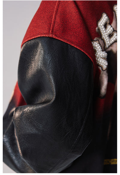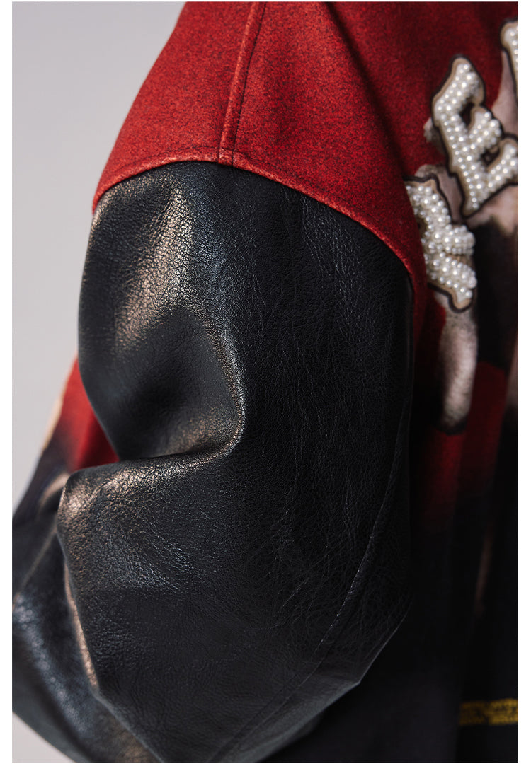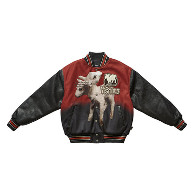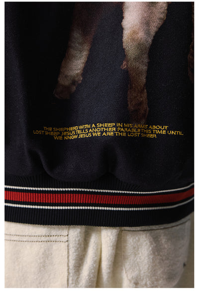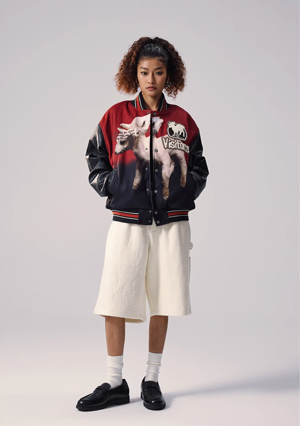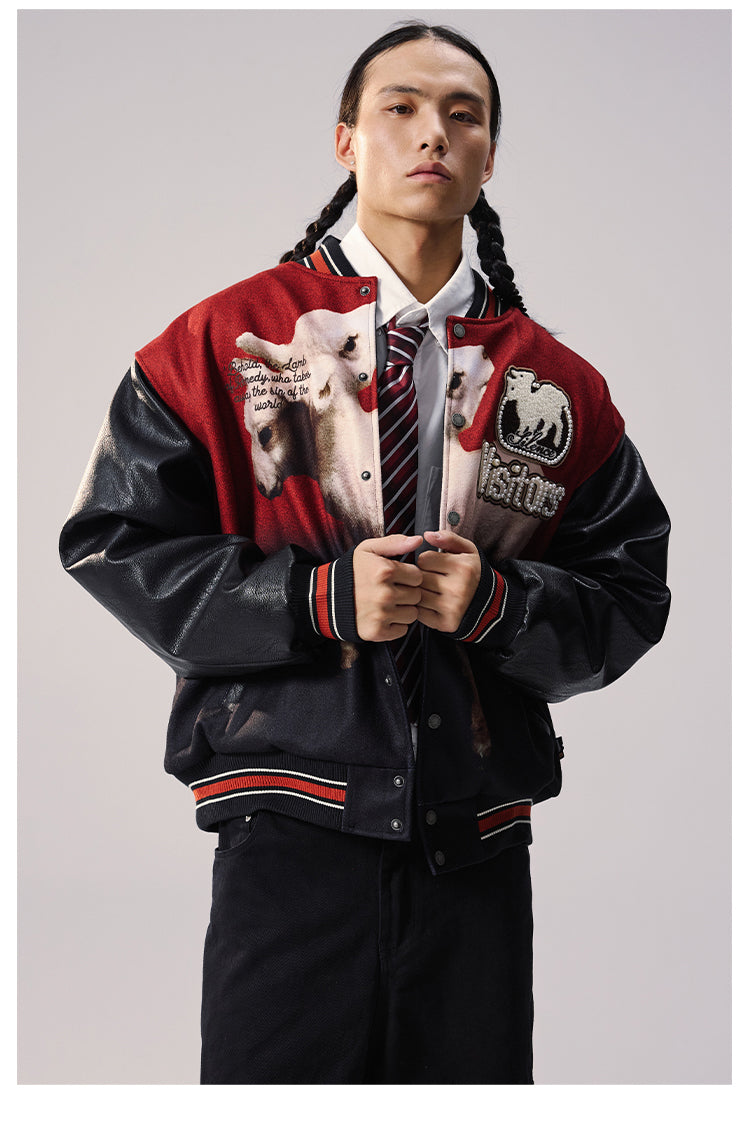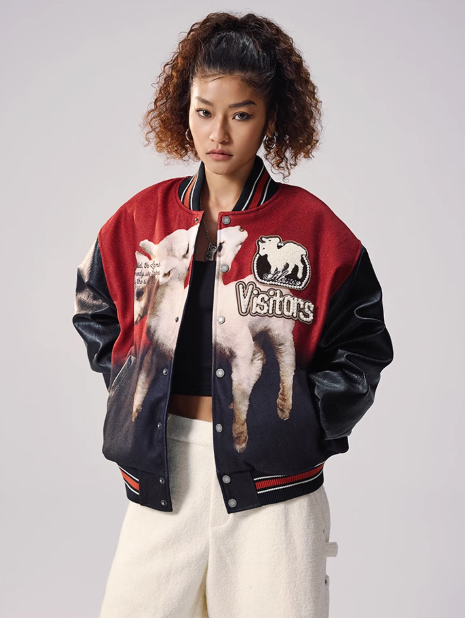 Remedy Sheep Full Print Pearl Embroidered Varsity Jacket