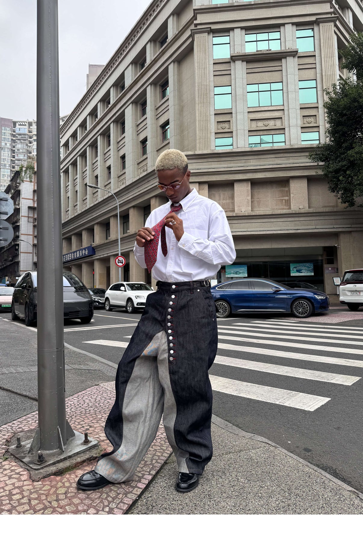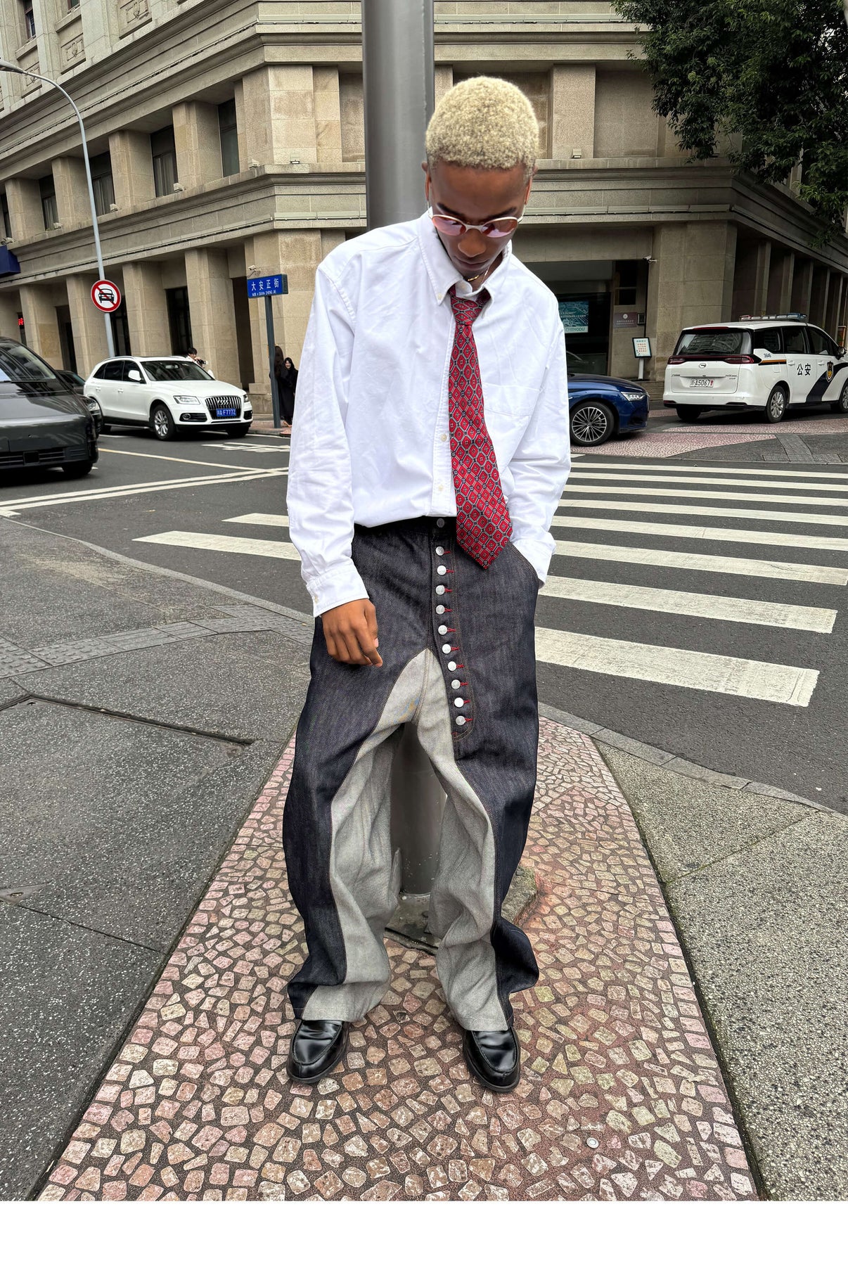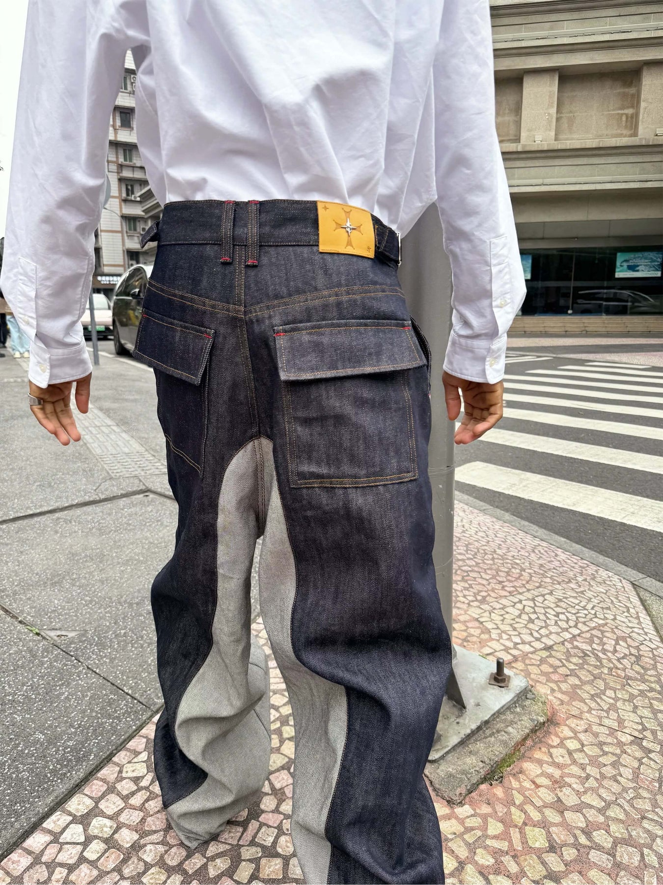 STEEPC Button Fly Reverse Patchwork Baggy Jeans | Face 3 Face