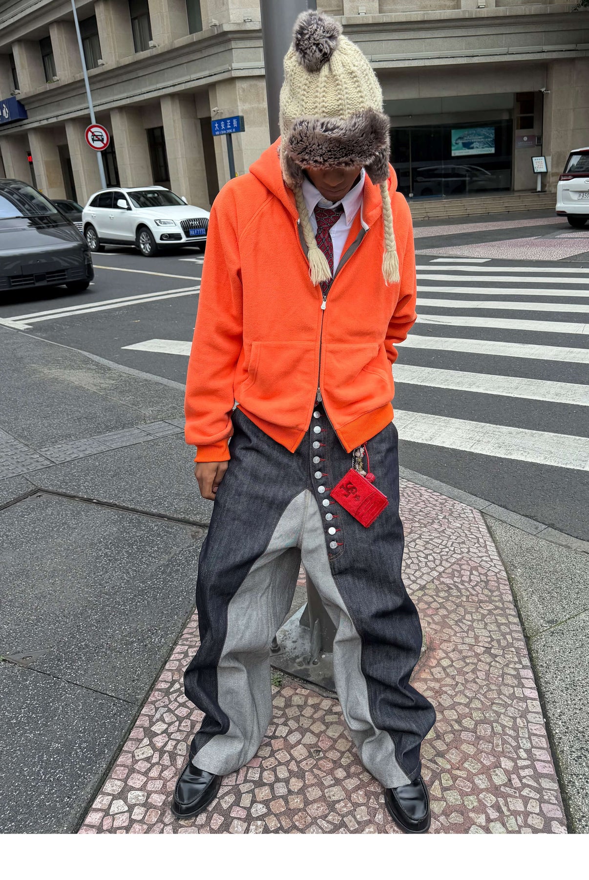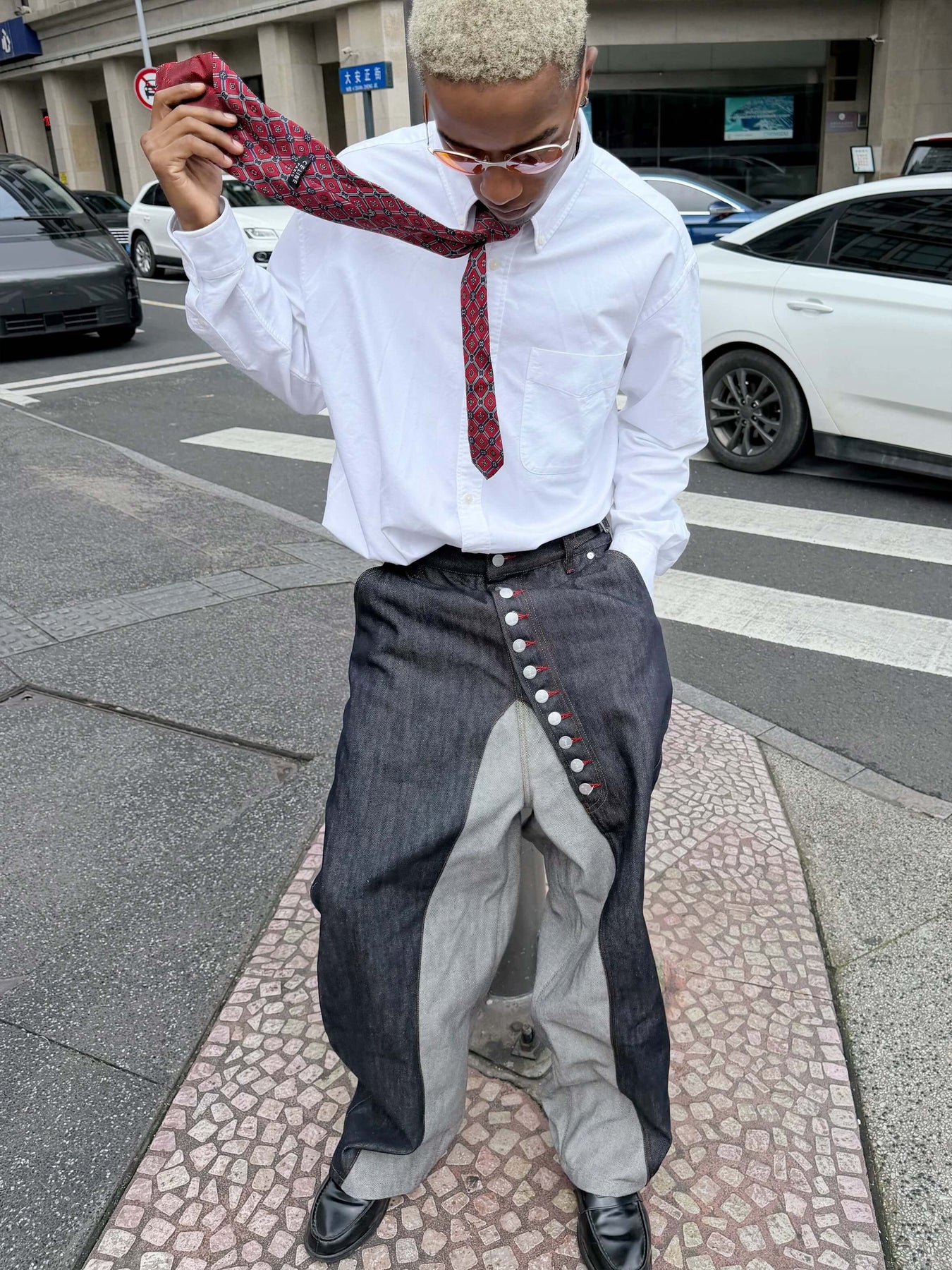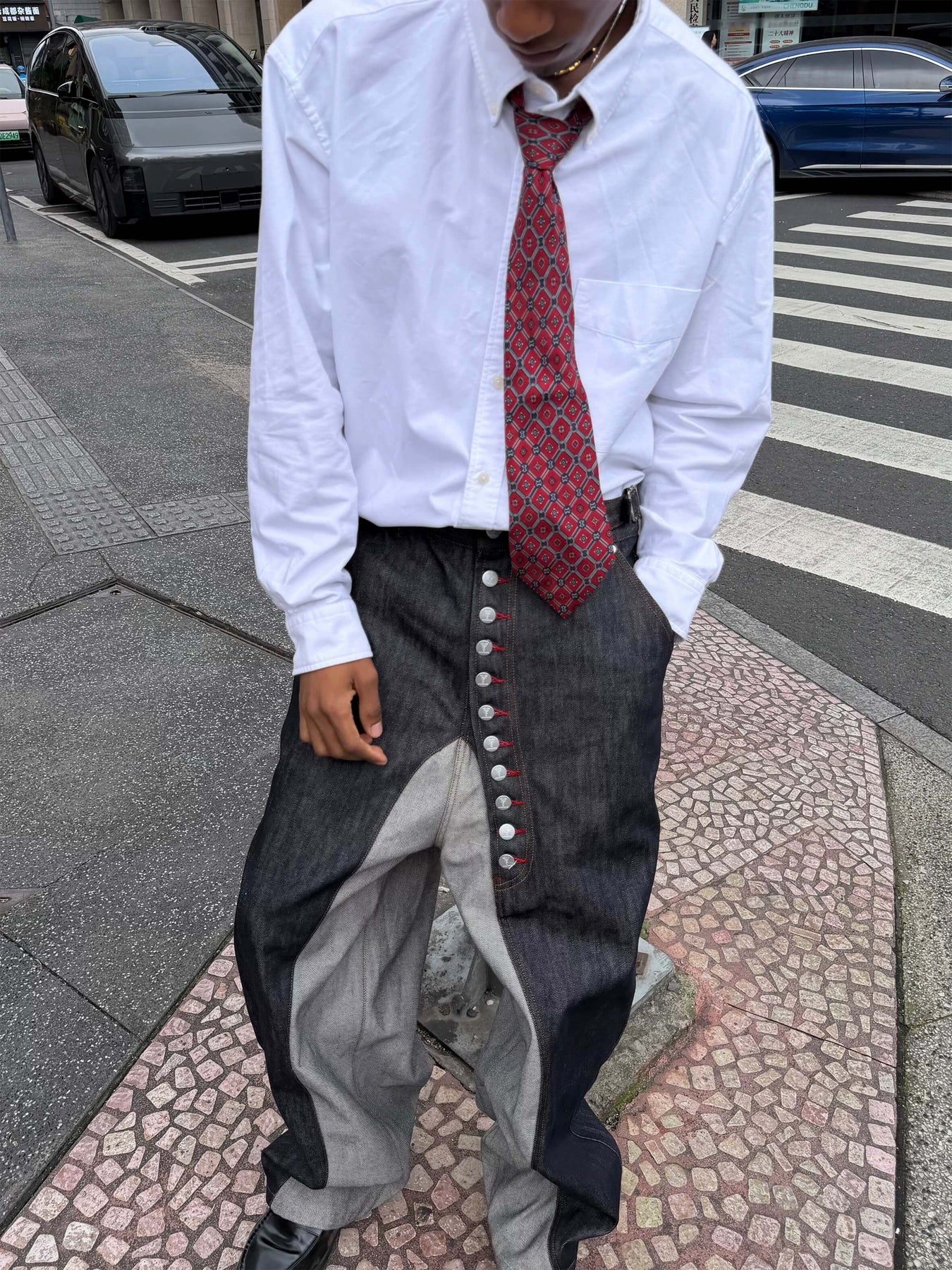 STEEPC Button Fly Reverse Patchwork Baggy Jeans | Face 3 Face