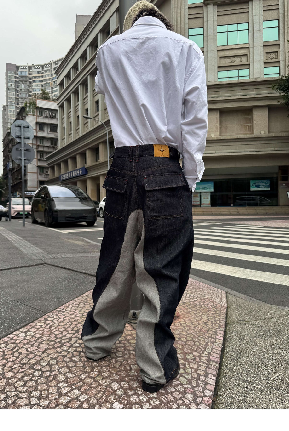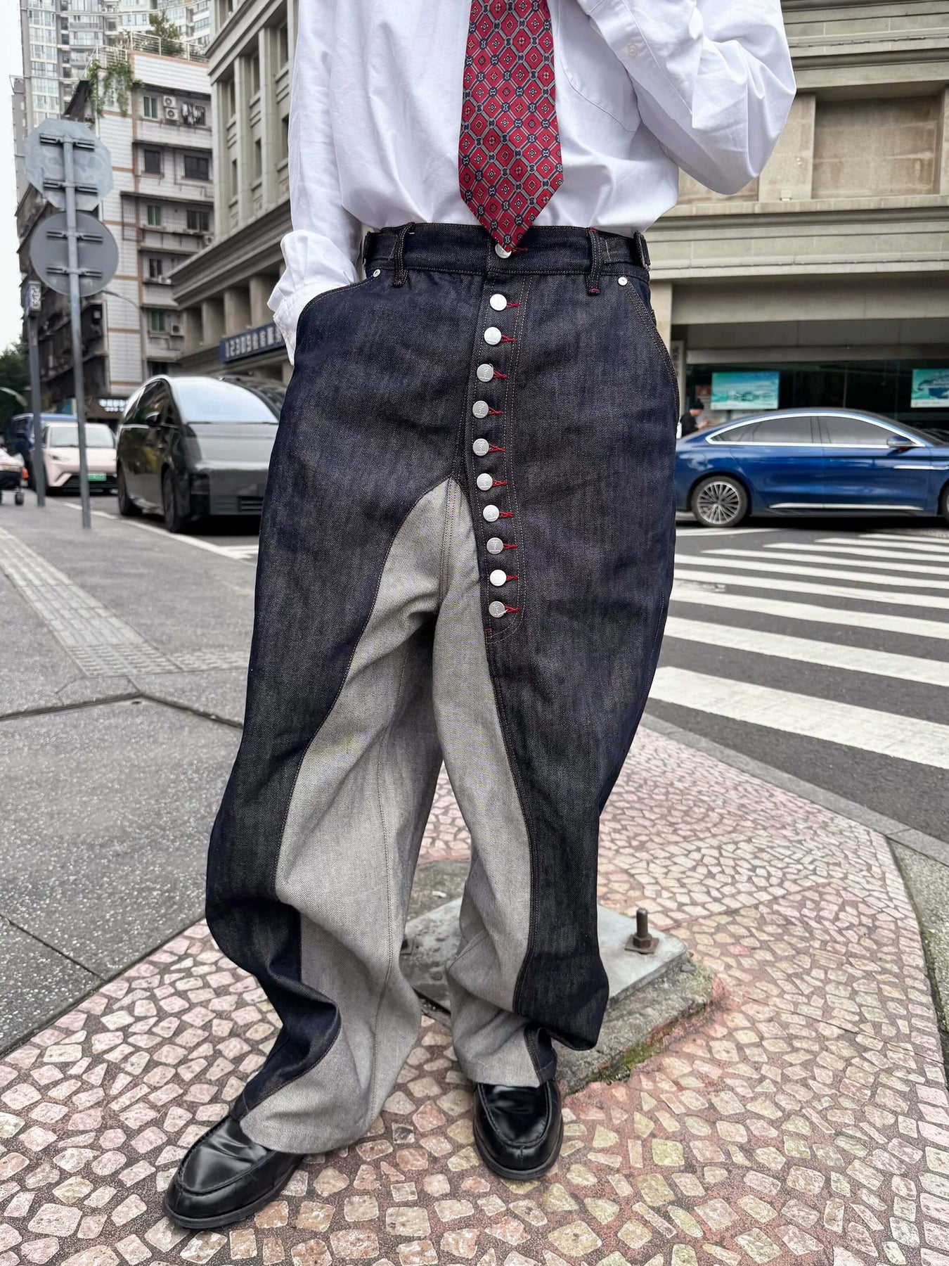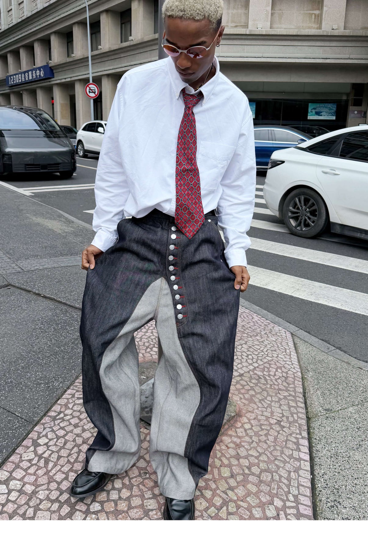 STEEPC Button Fly Reverse Patchwork Baggy Jeans