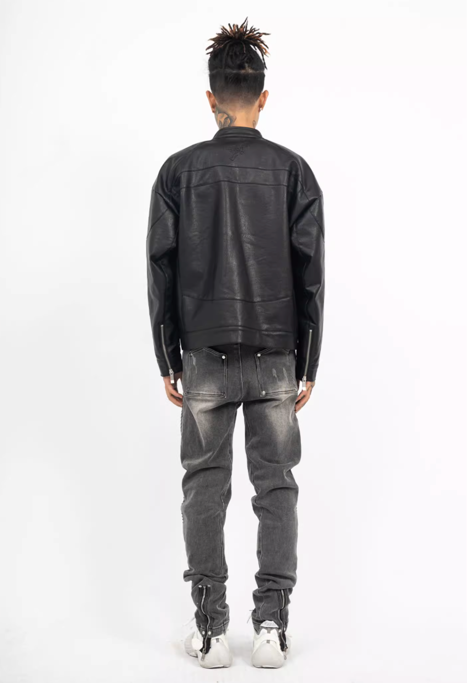 TGFCLUB Logo Embroidered Racing Leather Jacket | Face 3 Face