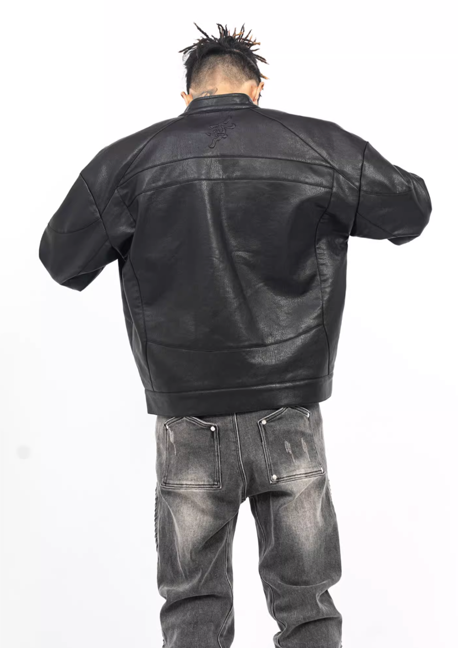TGFCLUB Logo Embroidered Racing Leather Jacket