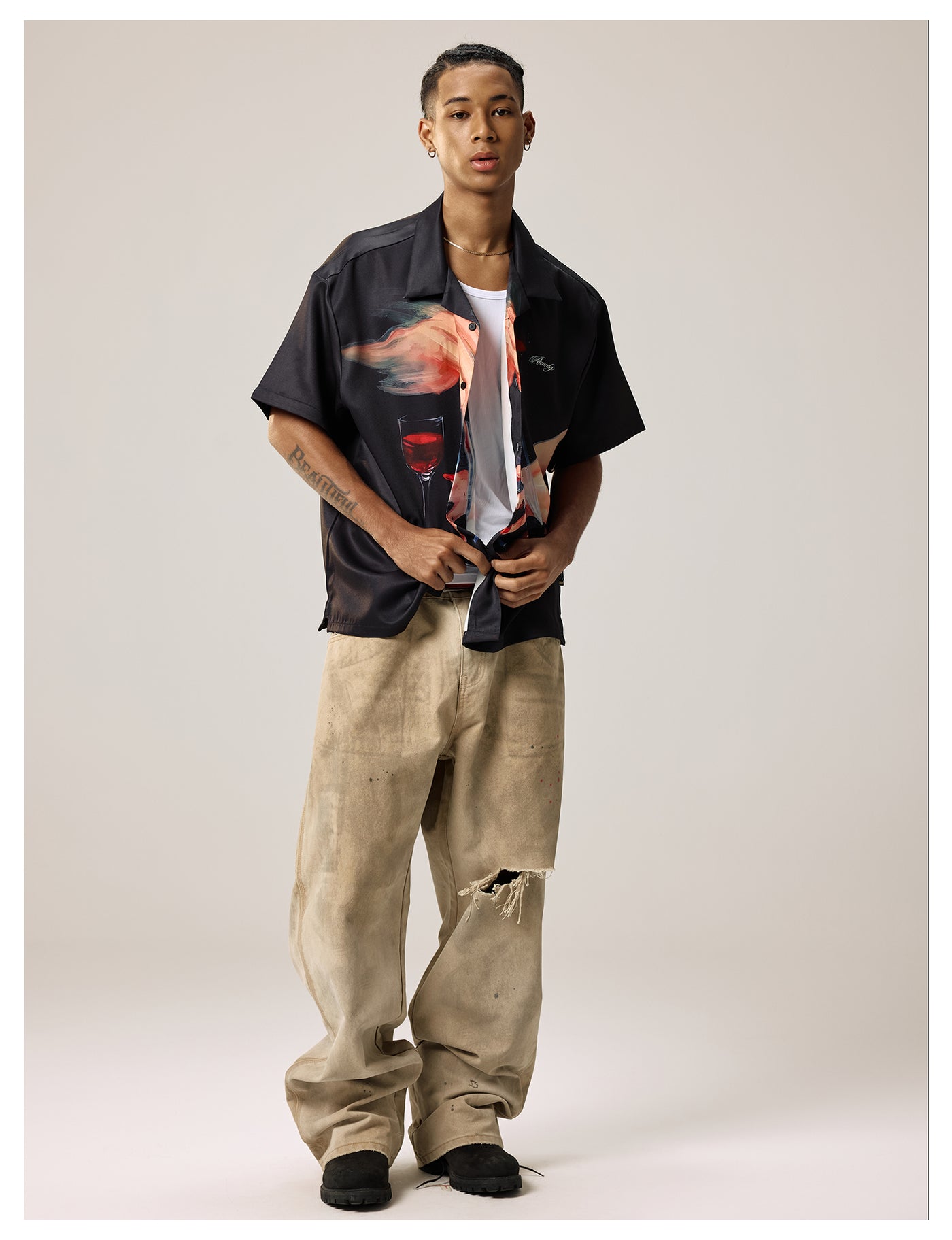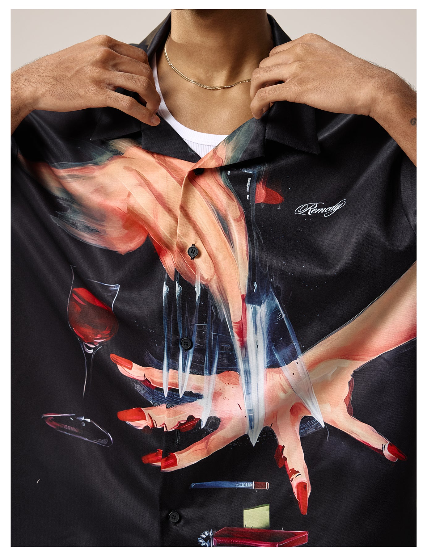 Remedy Finger and Wine Glass Full Print Short Sleeve Cuban Shirt | Face 3 Face