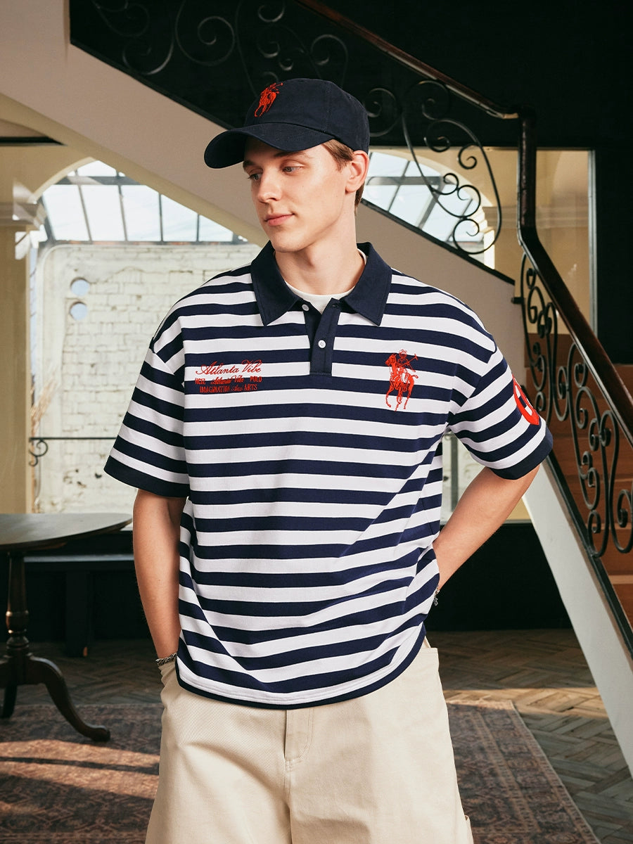 Harsh and Cruel Nautical Stripe Embroidered Polo | Face 3 Face
