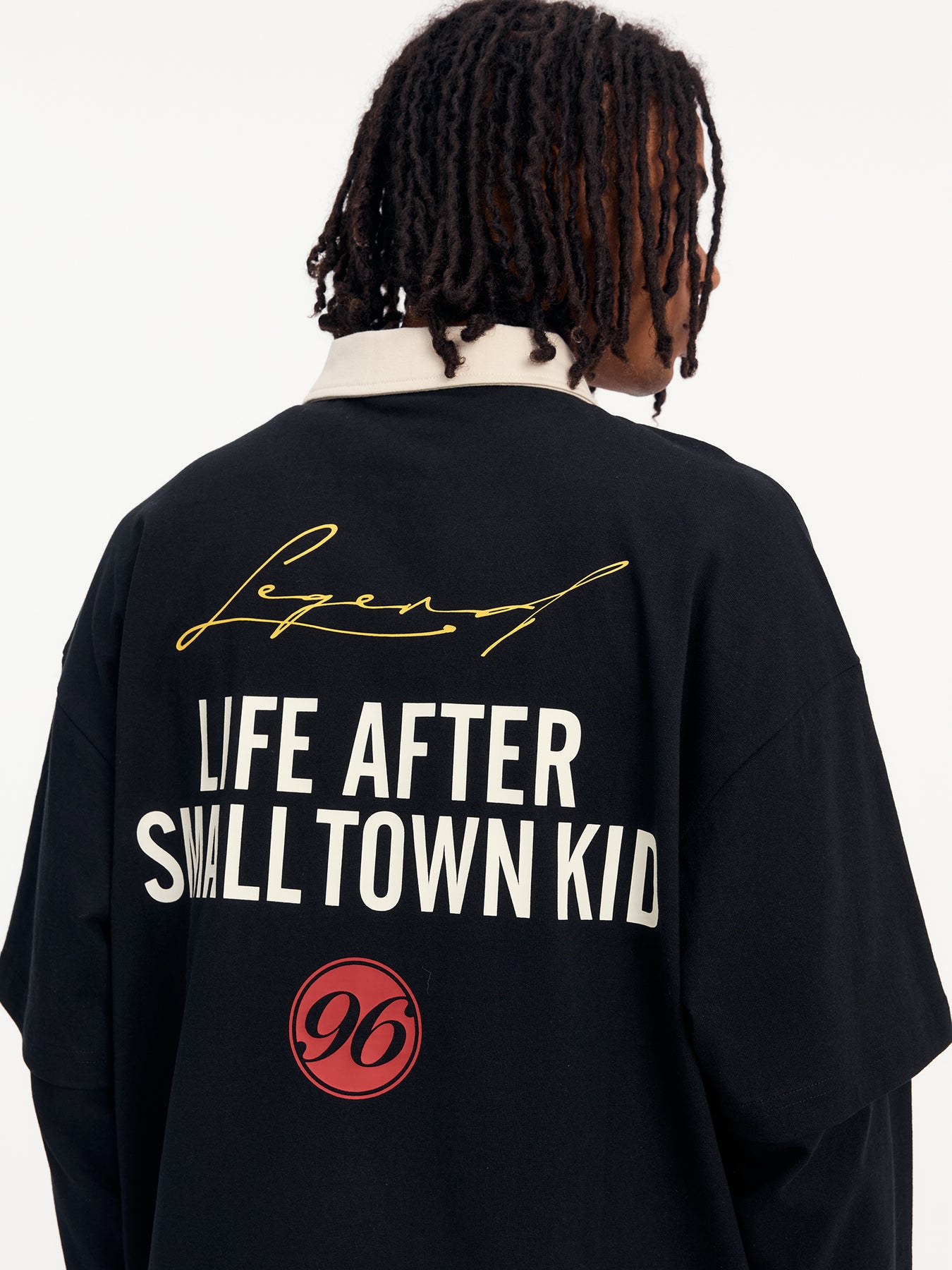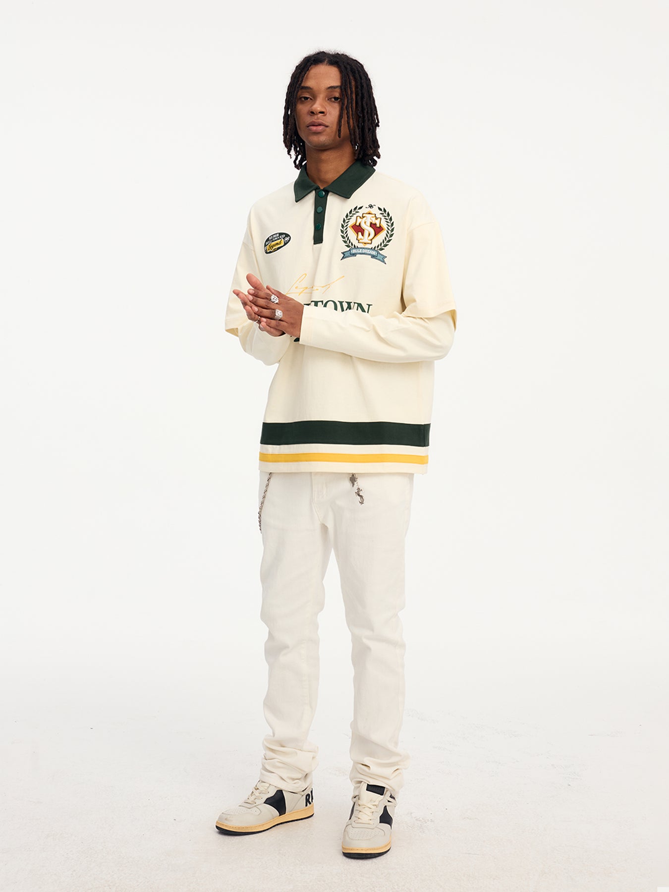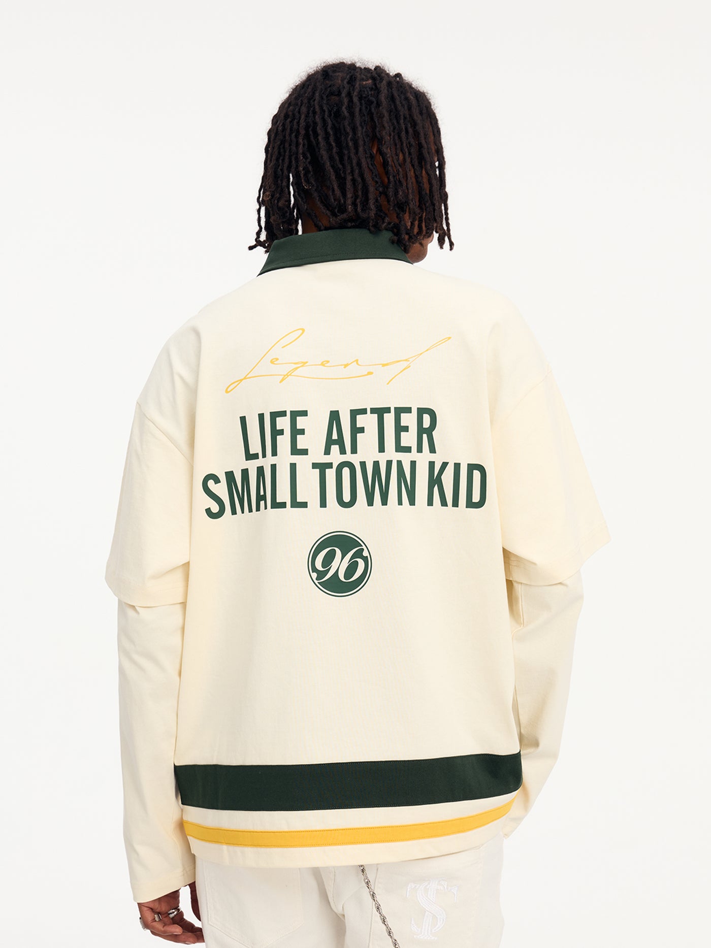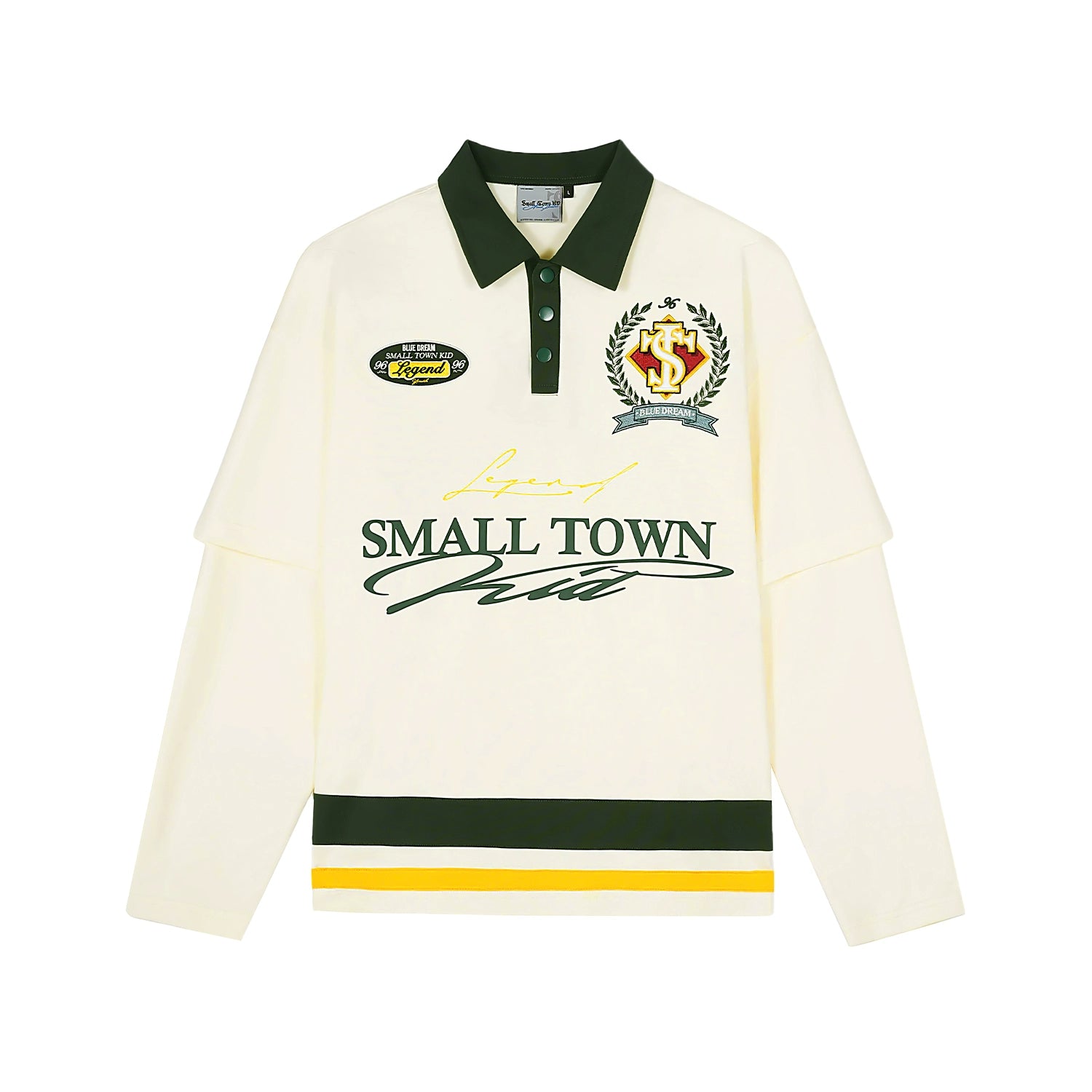 Small Town Kid 3D Embroidered Badge Fake Two-Piece Long-Sleeve Polo | Face 3 Face