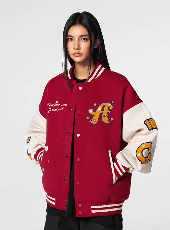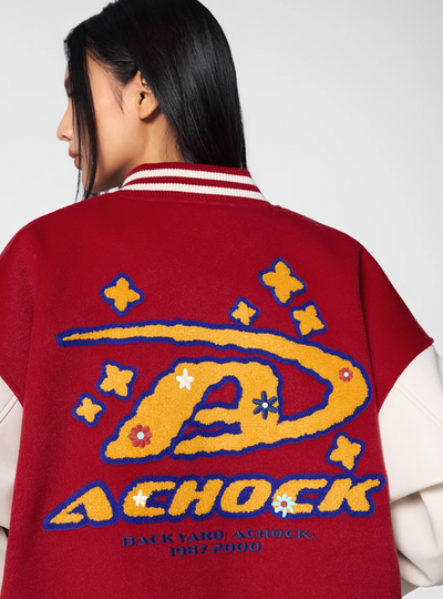 Achock Logo Embroidery Red Varsity Jacket