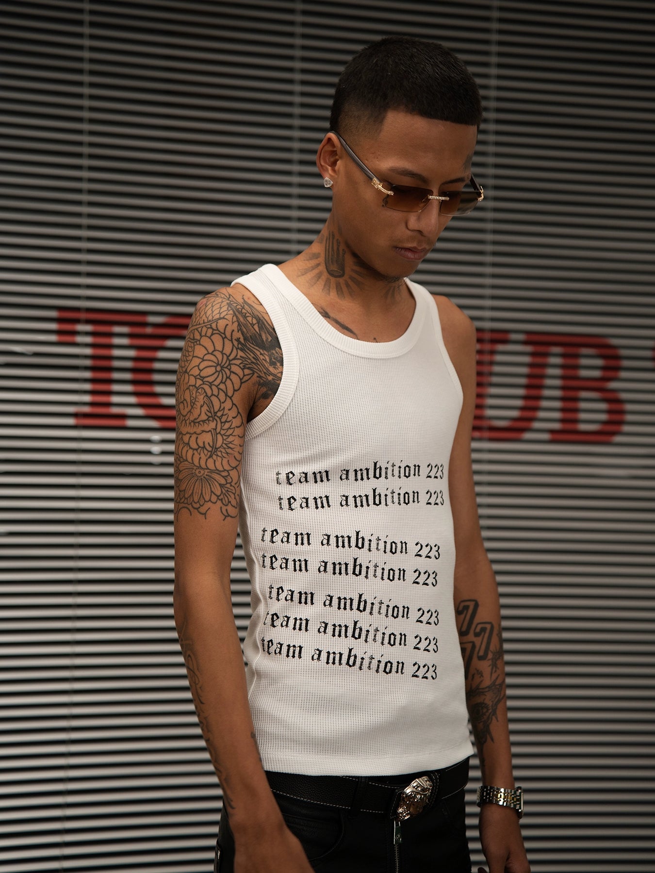 TGFCLUB 223 Print Stretch Waffle Tank Top | Face 3 Face