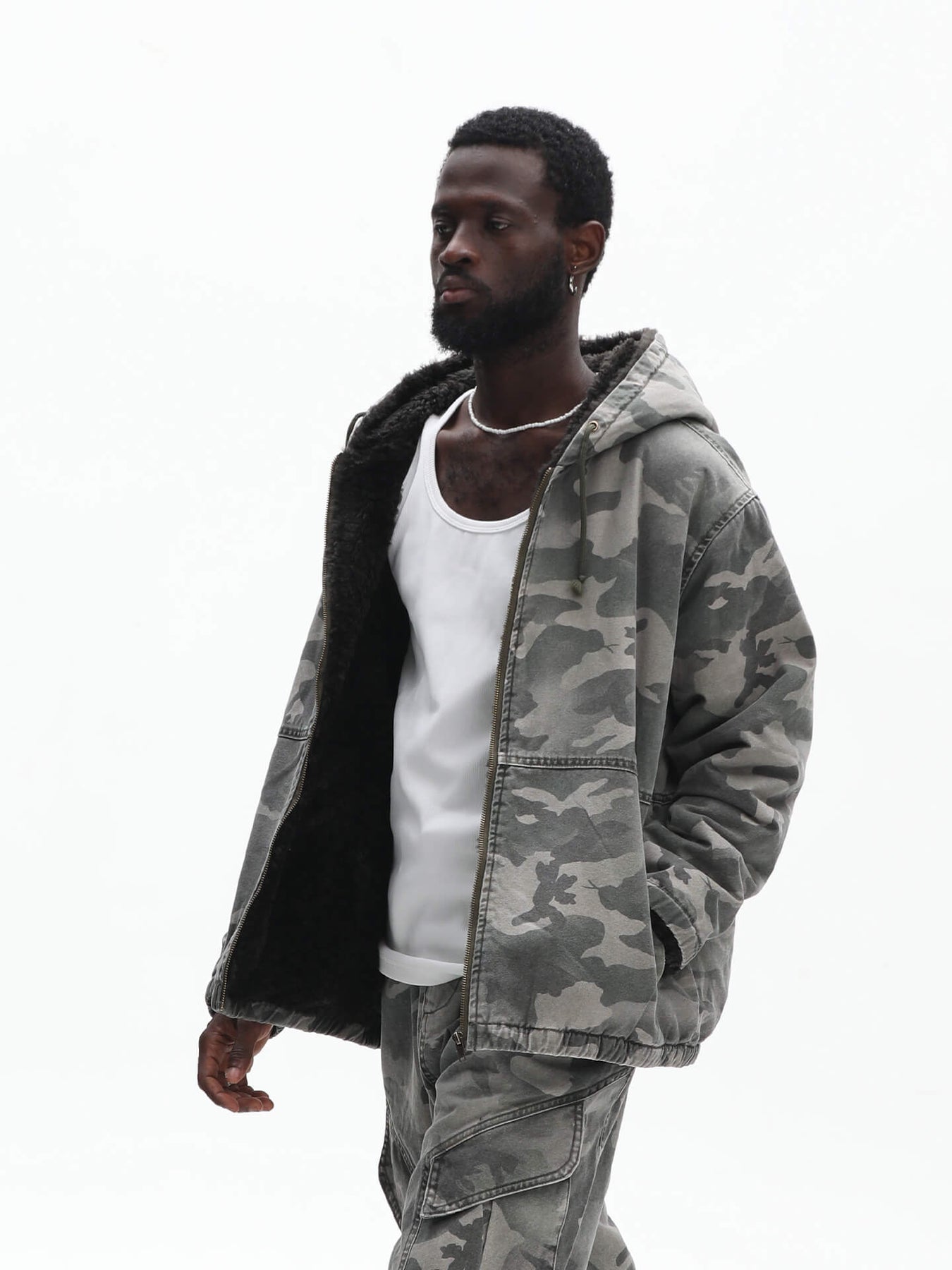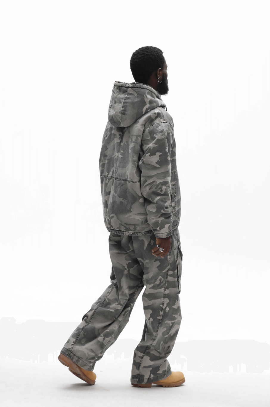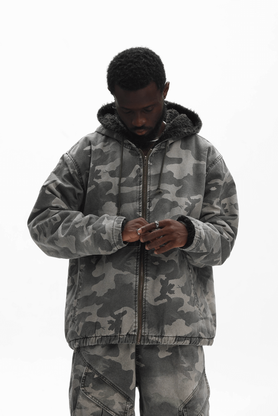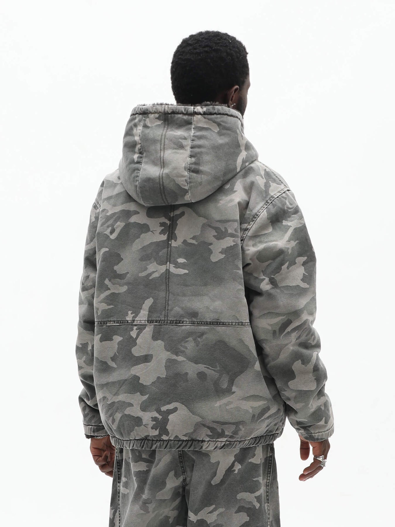 UNTILWERICH Washed Camouflage Hooded Jacket