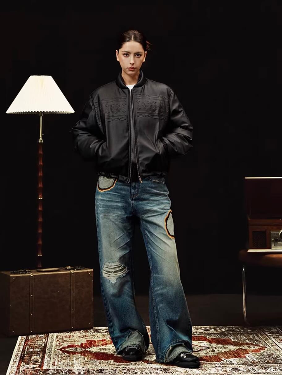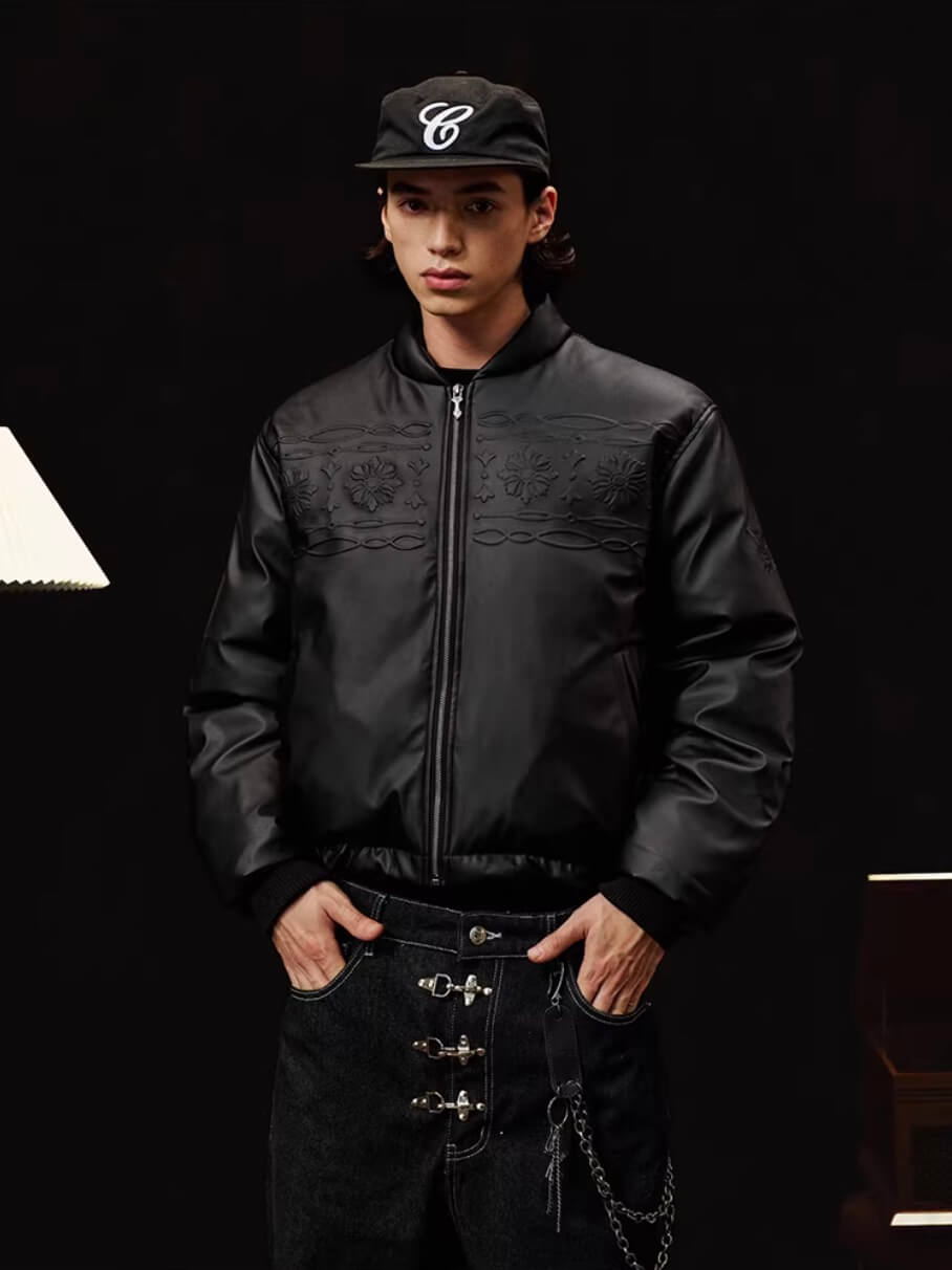 YADcrew Embossed PU Leather Down Jacket | Face 3 Face