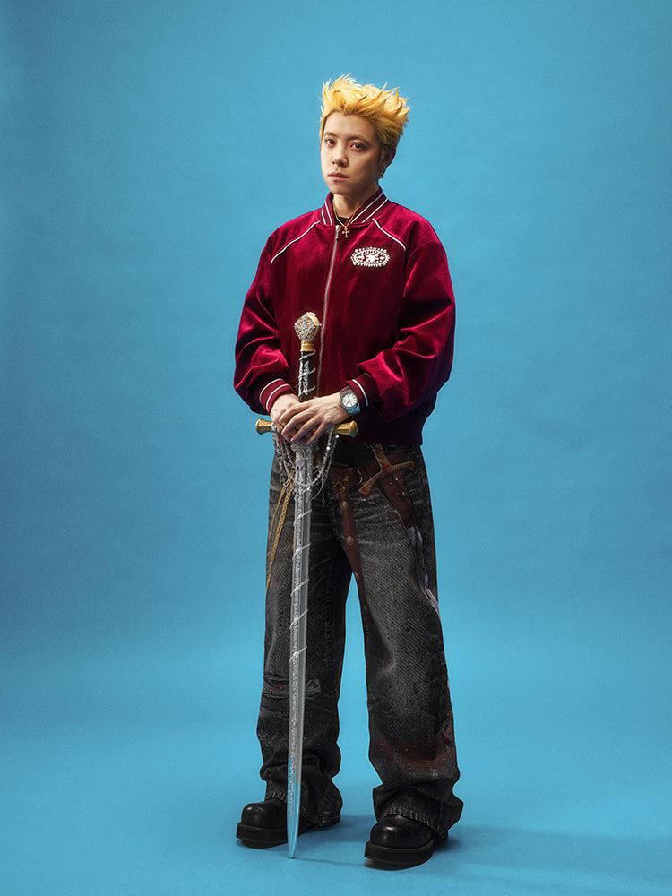 YADcrew Red Velvet Pearl-Embroidered Bomber Jacket | Face 3 Face