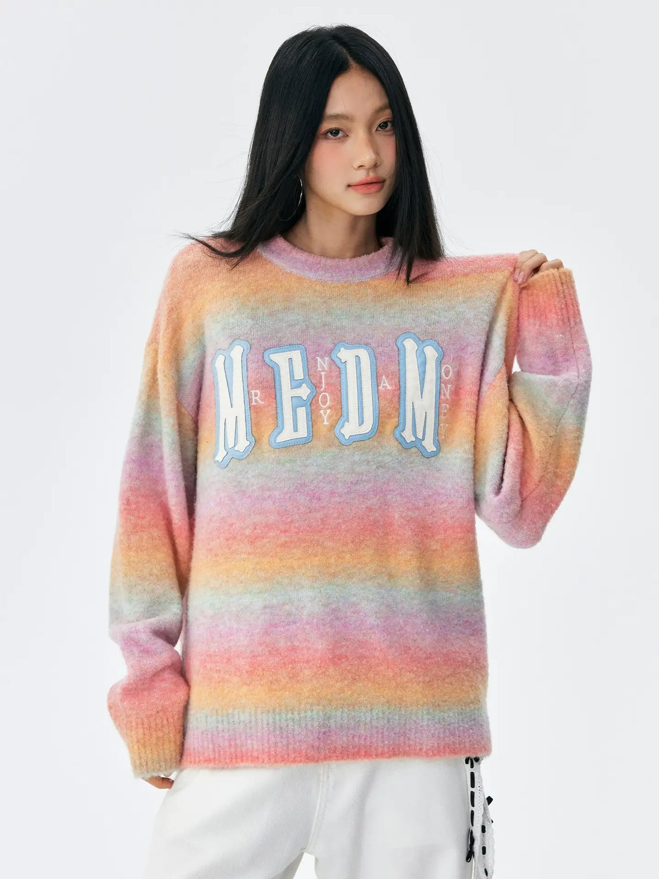 MEDM Logo Patch Rainbow Gradient Knit Sweater