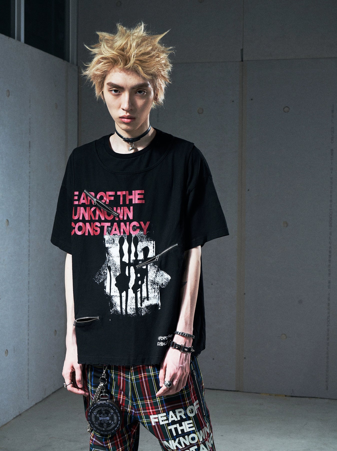 VENTUREK Double Layer Multi Zipper Destroyed Punk Rock Print Tee | Face 3 Face