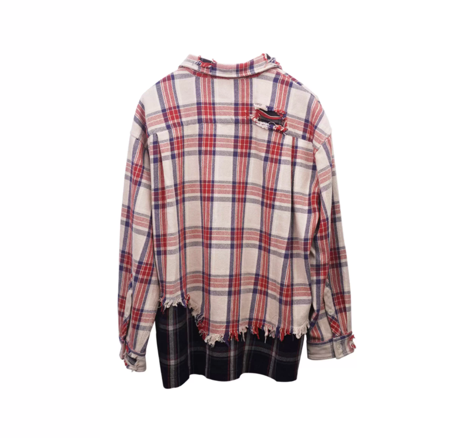 SOD Co. Distressed Layered Plaid Long Sleeve Shirt
