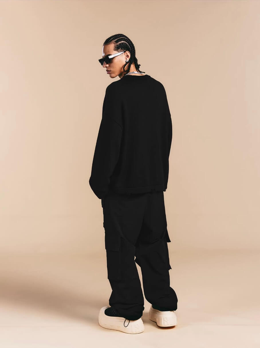 1807 3D Logo Embroidered Distressed Knit Sweater