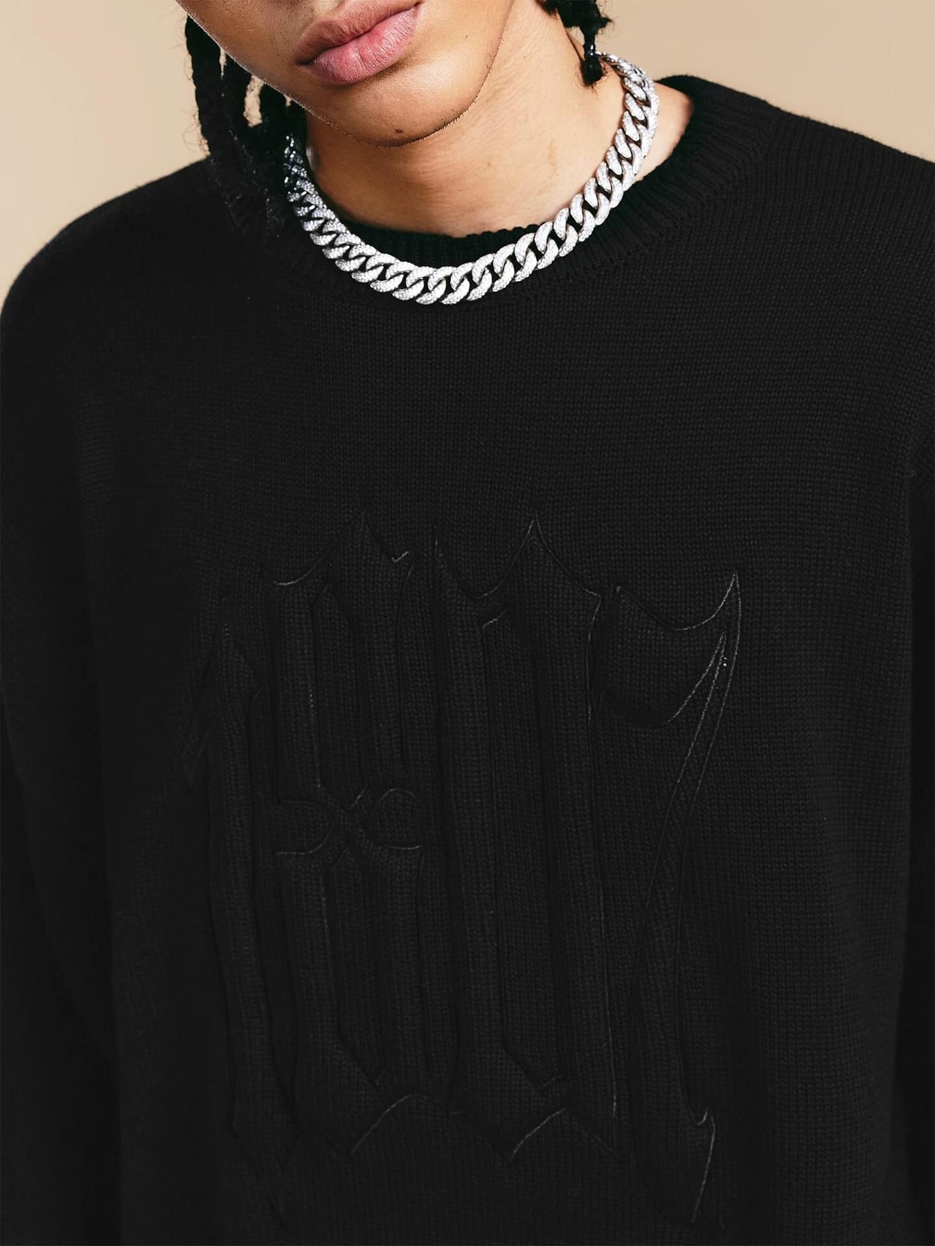 1807 3D Logo Embroidered Distressed Knit Sweater | Face 3 Face