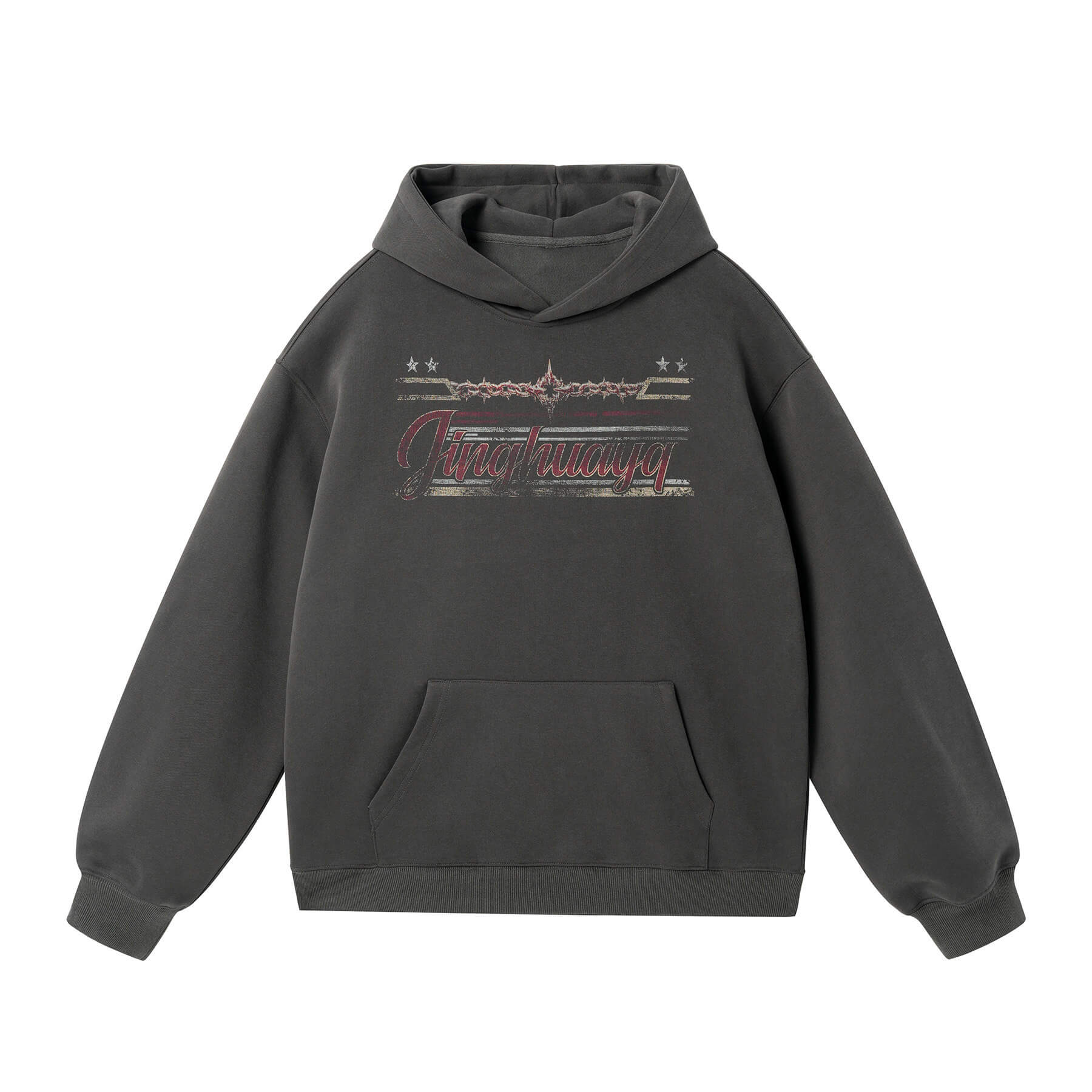 JHYQ Vintage Thorn Lettering Print Hoodie