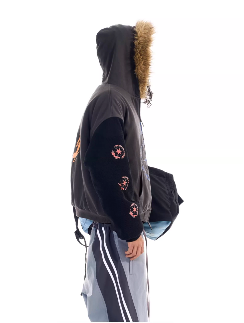 BLIND NO PLAN Color Block Fur Hood Padded Jacket