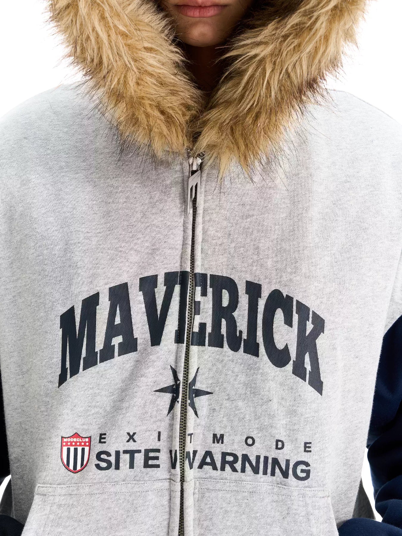 BLIND NO PLAN Gray Color Block Fur Hood Padded Jacket | Face 3 Face