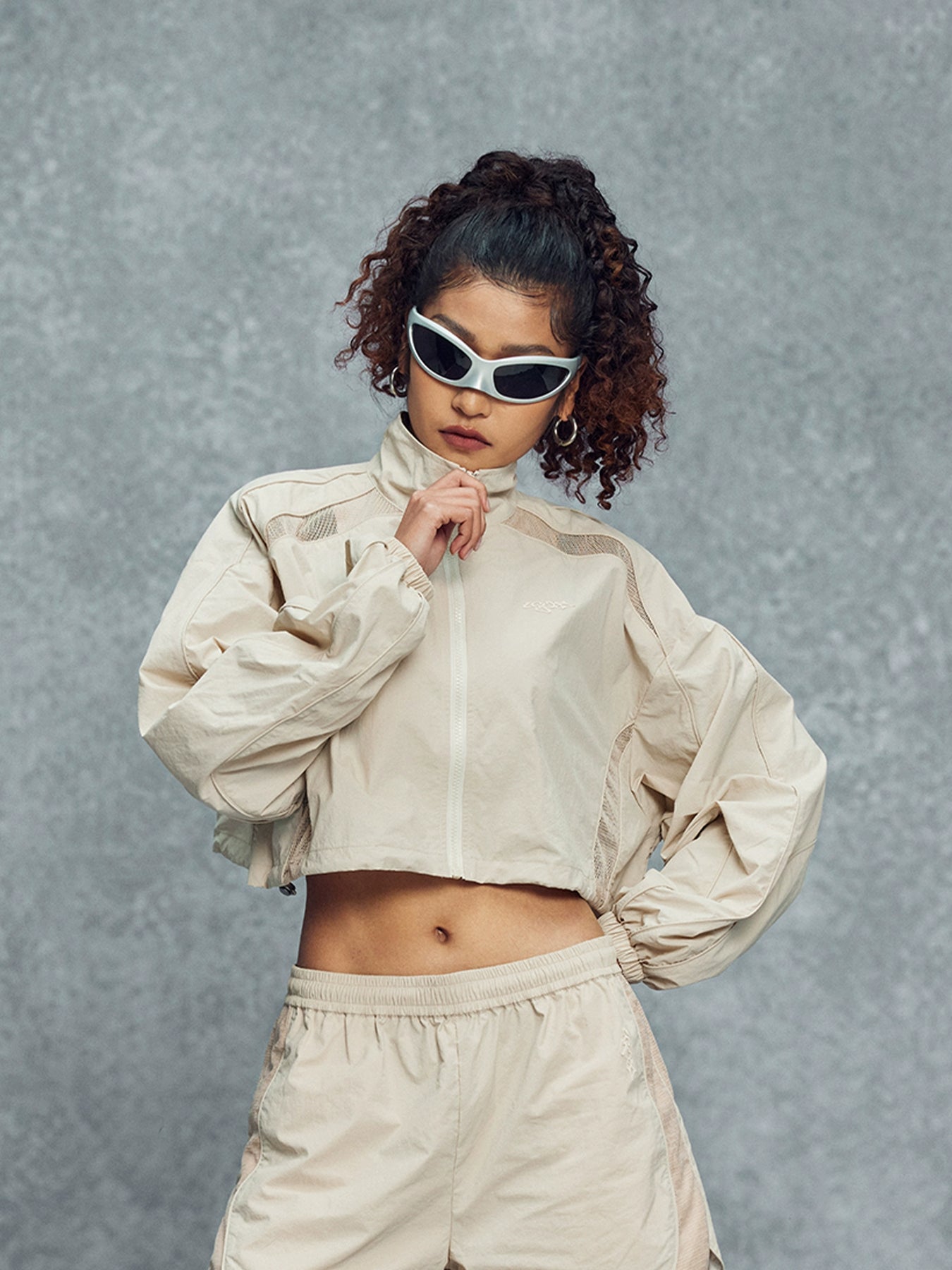 1807 Mesh Patchwork Cropped Track Jacket | Face 3 Face