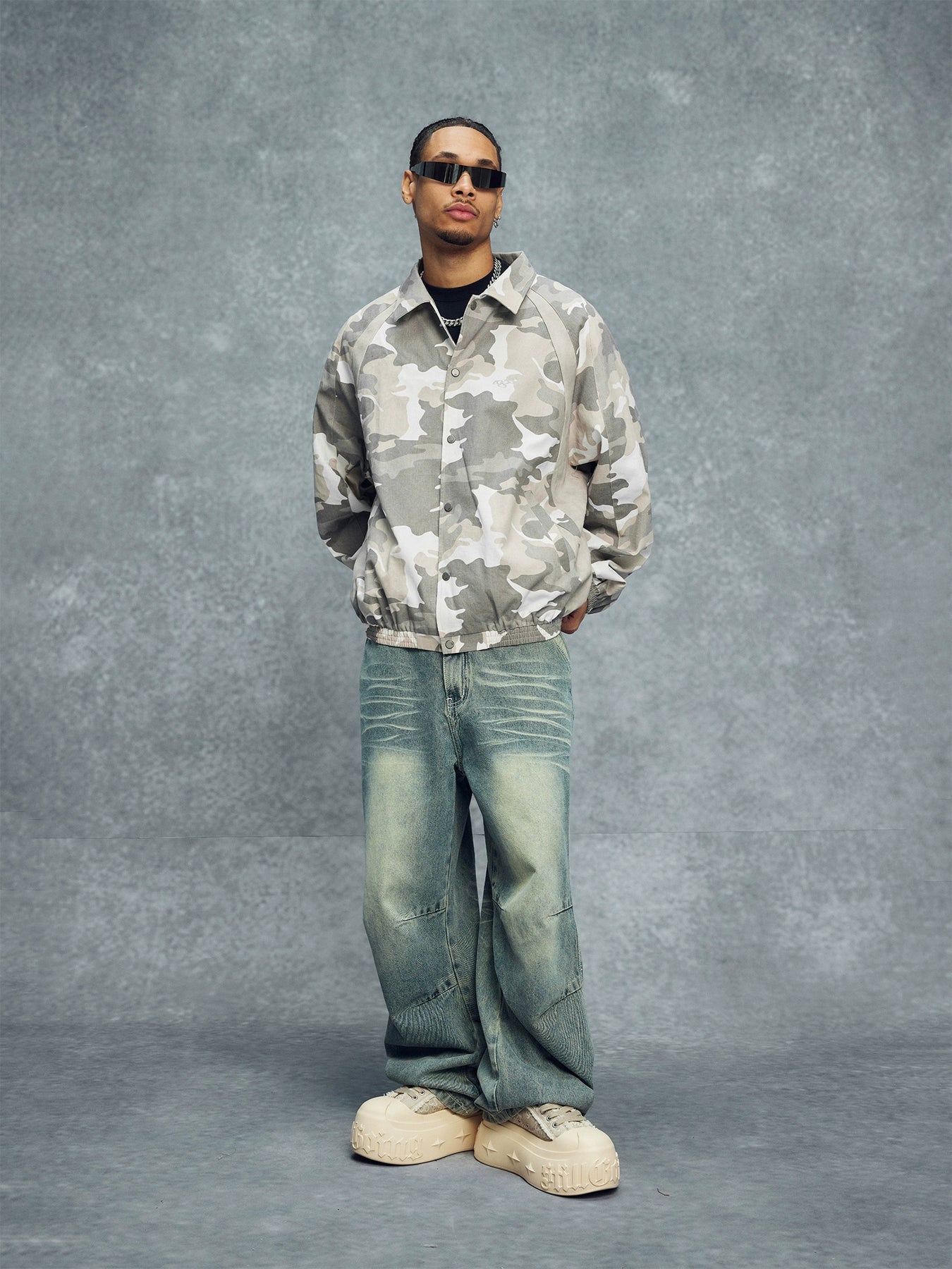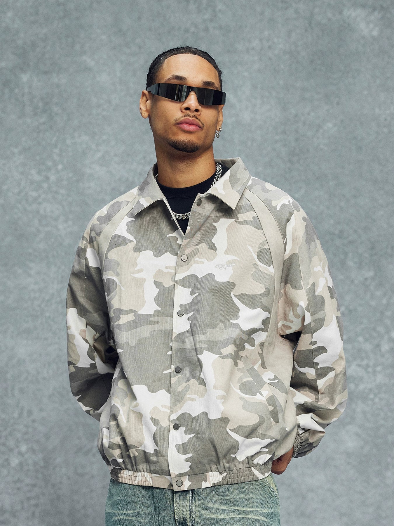 1807 Textured Leather Patchwork Camo Coach Jacket
