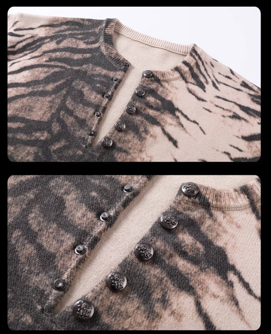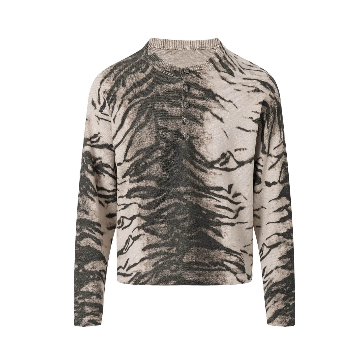Night Lab Zebra and Leopard Print Henley Knit Sweater | Face 3 Face