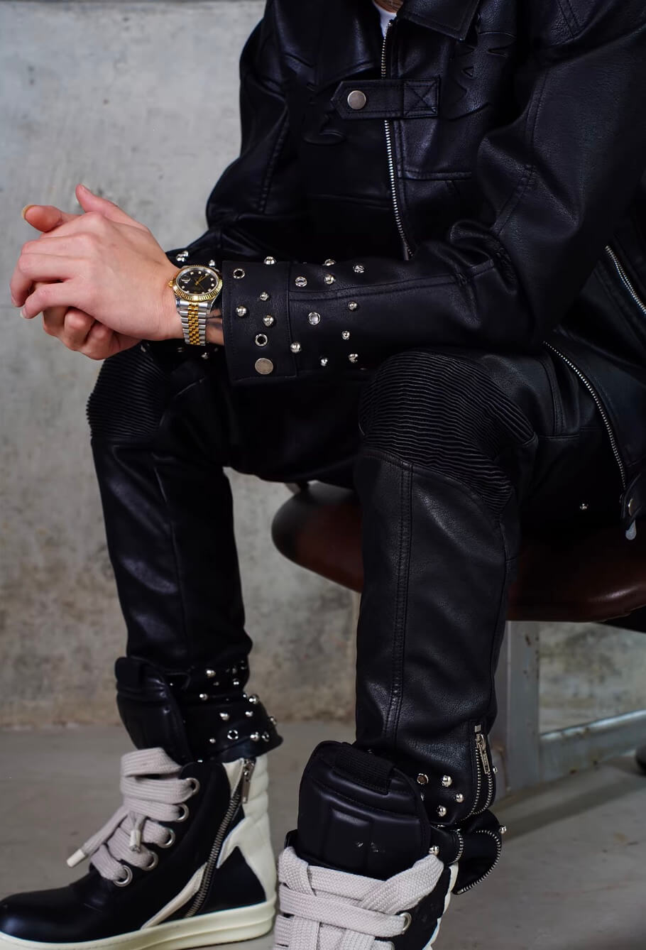 TGFCLUB Embossed Studded Slim Fit PU Leather Pants | Face 3 Face