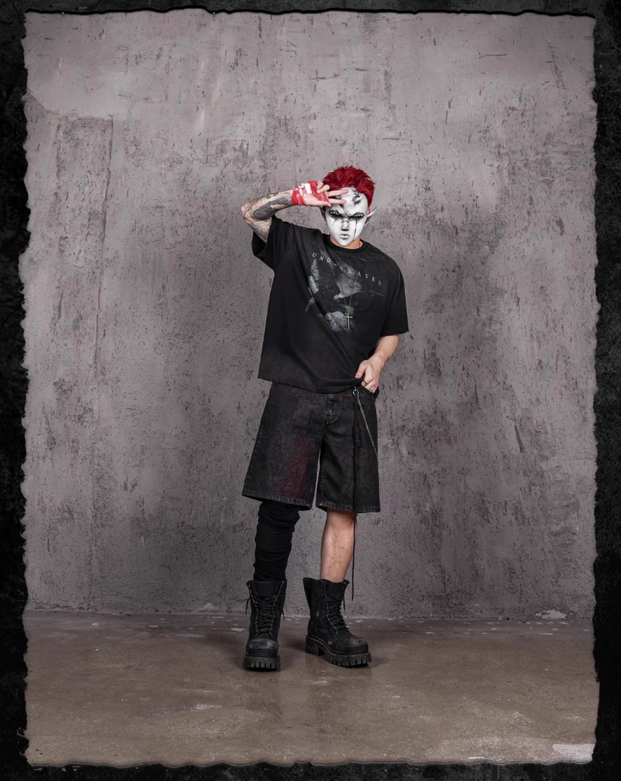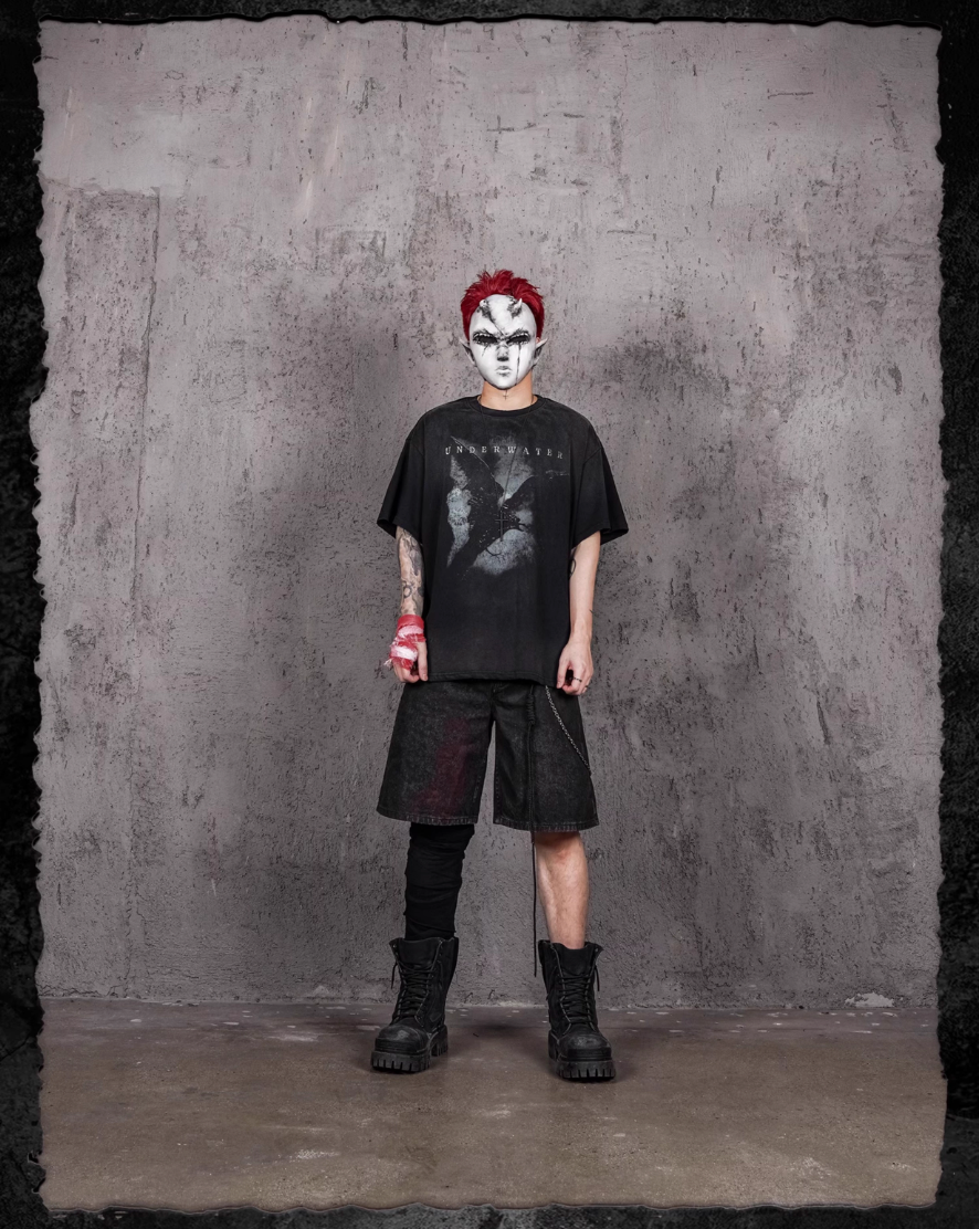 UNDERWATER Night Raven Print Washed Distressed Tee | Face 3 Face
