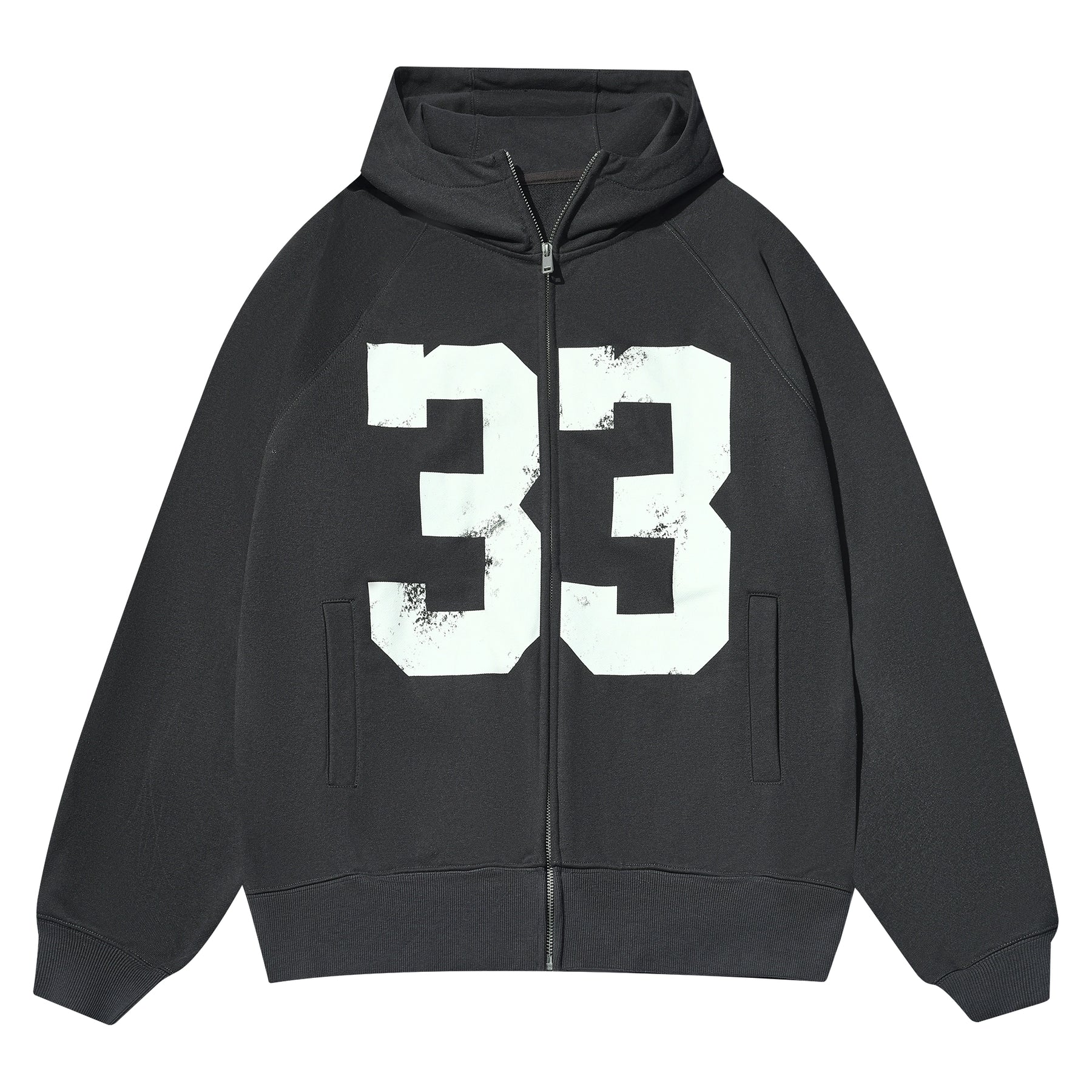 JUST VIBE Number 33 Vintage Print Zip Up Hoodie