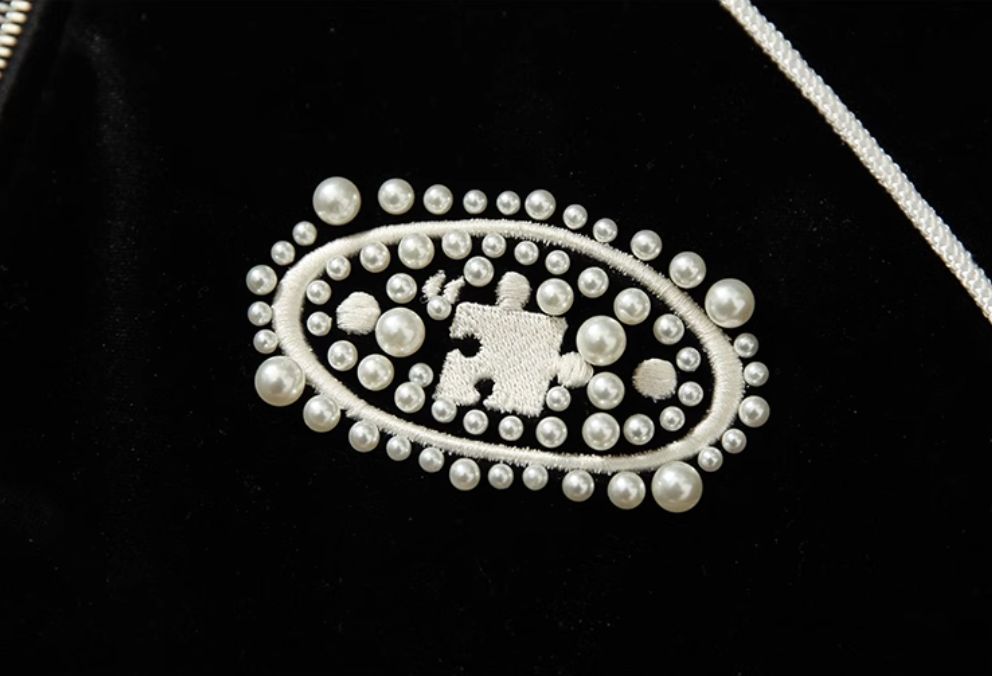 YADcrew Black Velvet Pearl-Embroidered Bomber Jacket | Face 3 Face