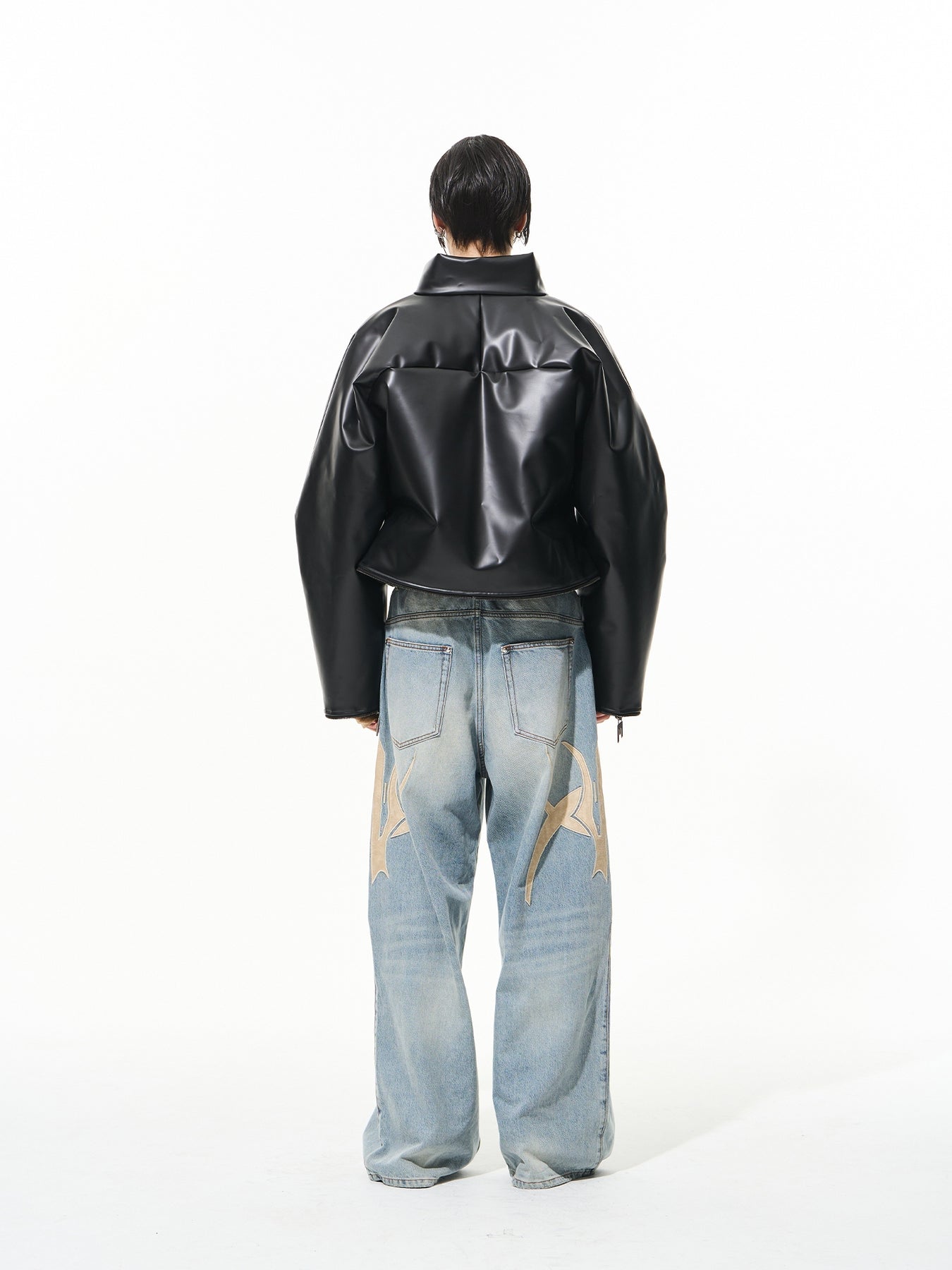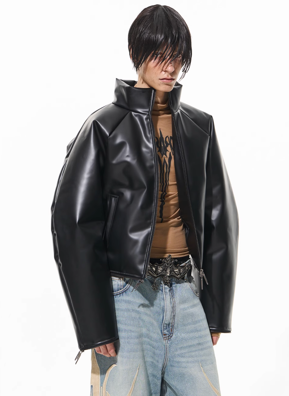 BLIND NO PLAN Rubberized Raglan Sleeve Puffer Jacket