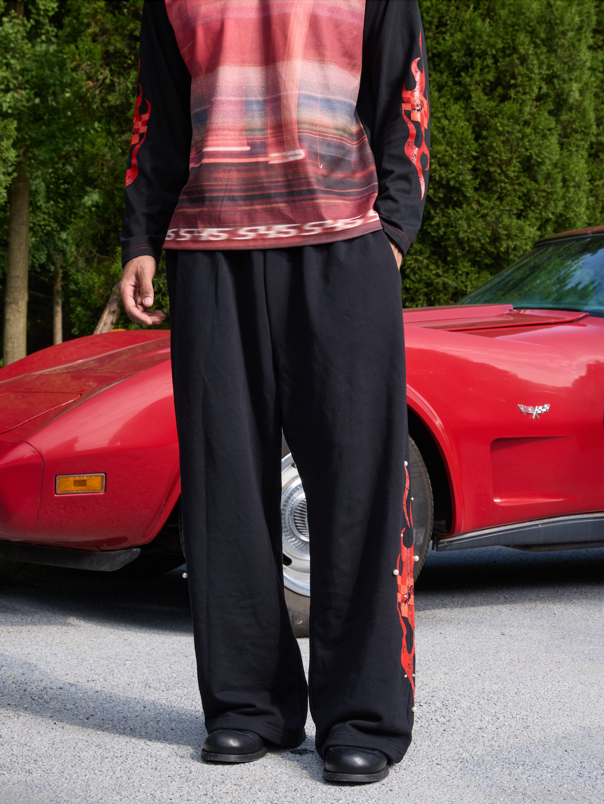 S45 Flame Print Pearl Baggy Sweatpants | Face 3 Face