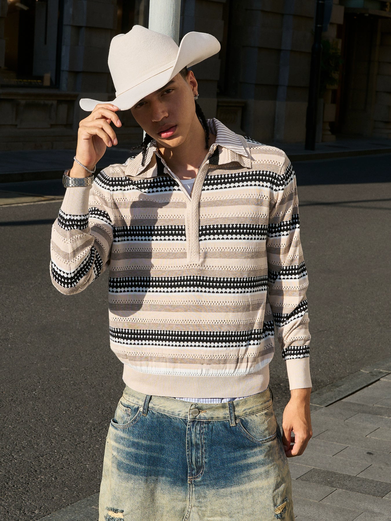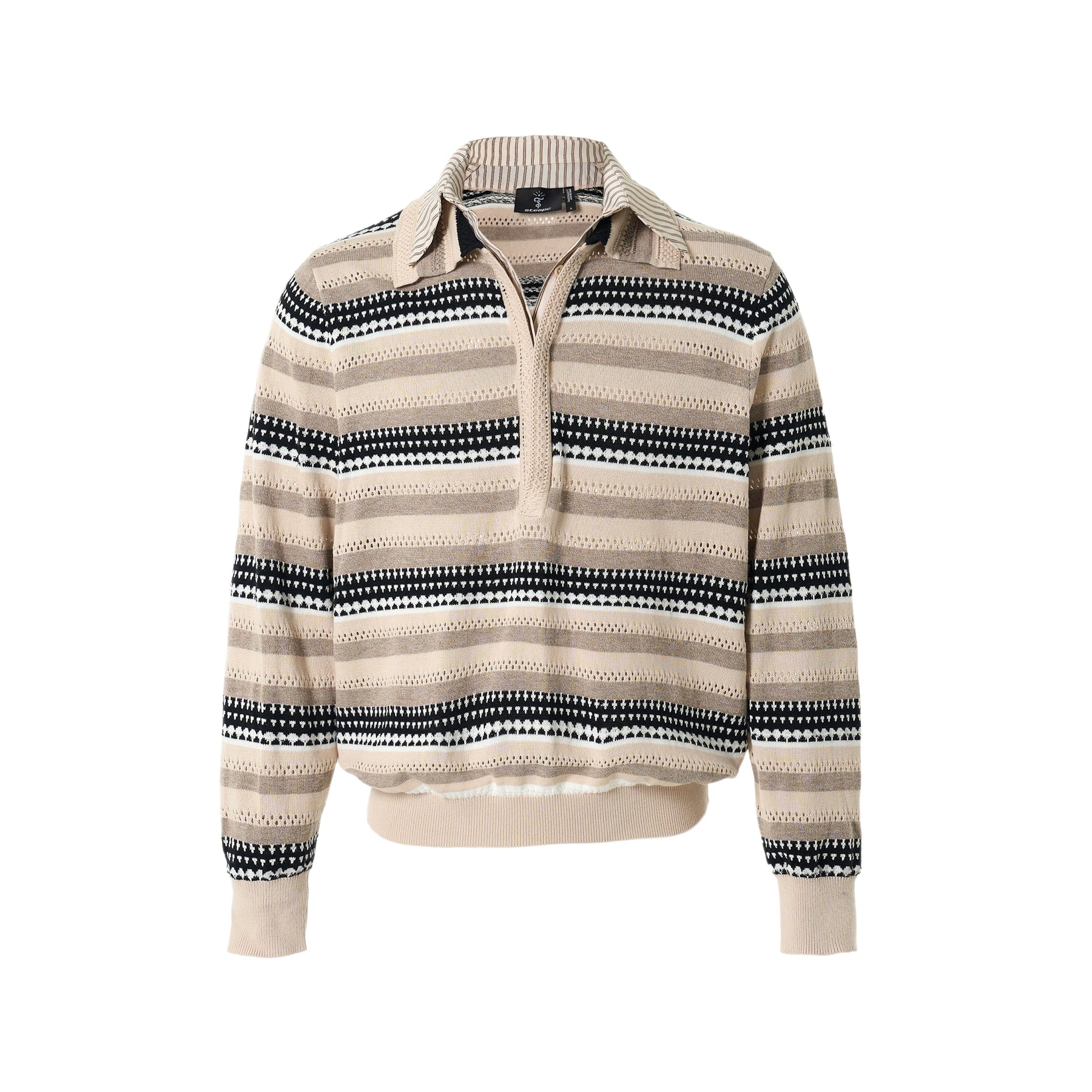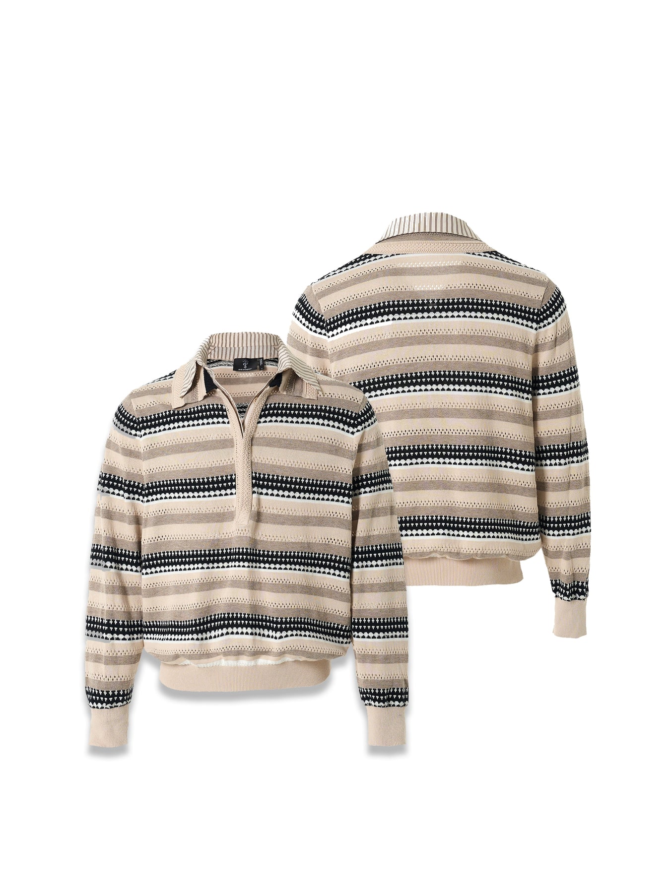STEEPC Layered Design Knit Striped Long Sleeve Polo | Face 3 Face