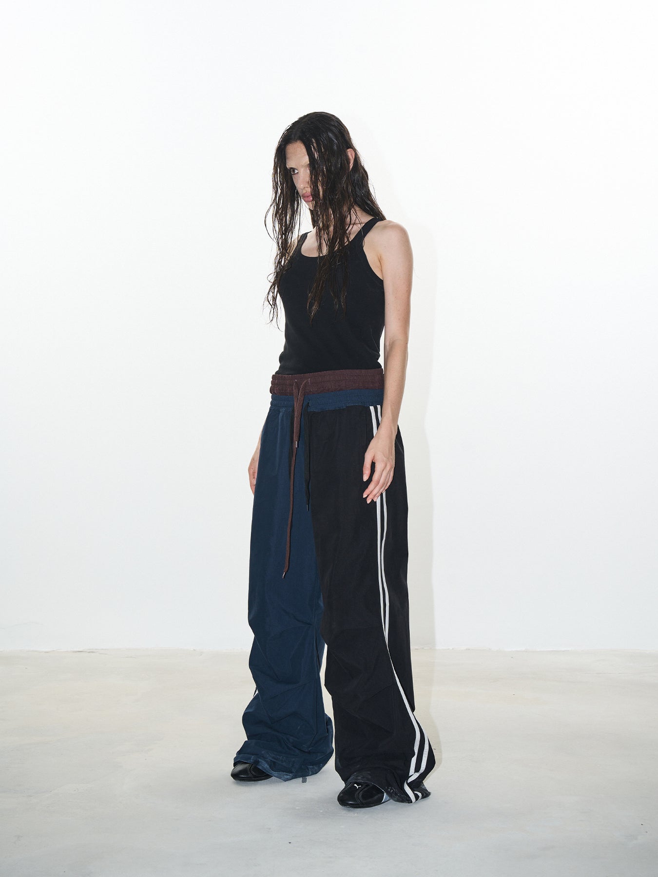 BLIND NO PLAN Double Waistband Layer 3D Pleated Sweatpants