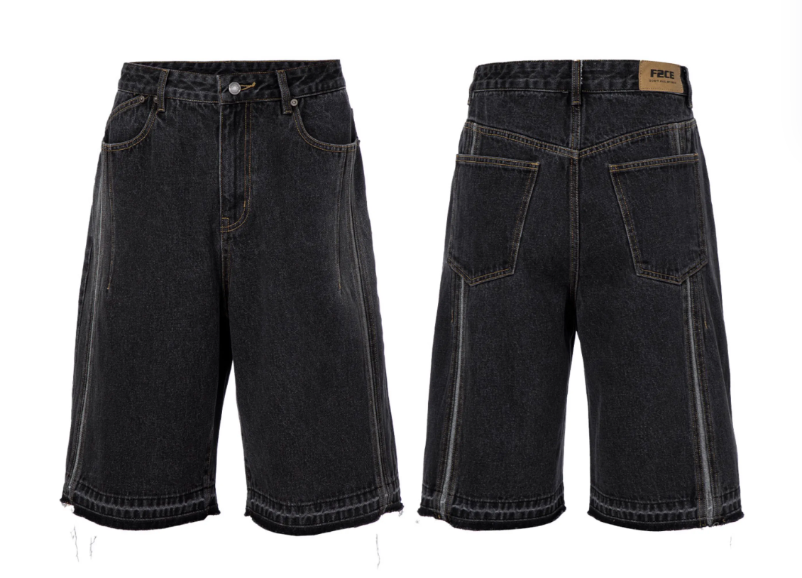 F2CE Washed and Aged Spliced Denim Shorts | Face 3 Face